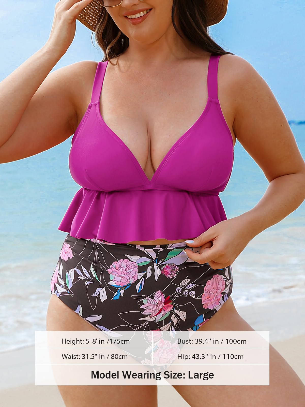 • Design: A Perfect Staple to Add to Your Summer Wardrobe, This V Neck Plus Size Bikini Set with Adjustable Wide Straps Features Flowy Ruffle Hem and Crisscross Self Tie Back, While the Matching High Waisted Ruched Bottom Provides More Tummy Control.