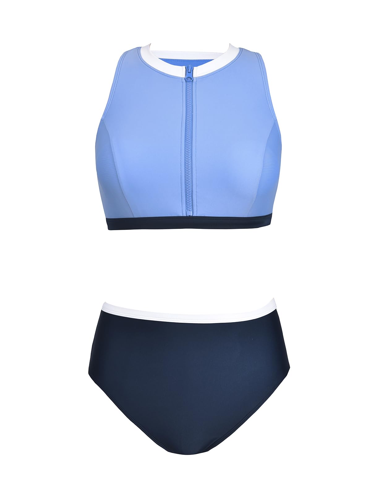 • Design: Embrace Retro Vibes with Our High Waisted Bikini Sets, Boasting a High Neck with a Front Zipper for Adjustable Flair. The Racerback Ensures Secure and Comfortable Fit, While the Color Block Design Adds a Trendy Touch to Your Beach Look.