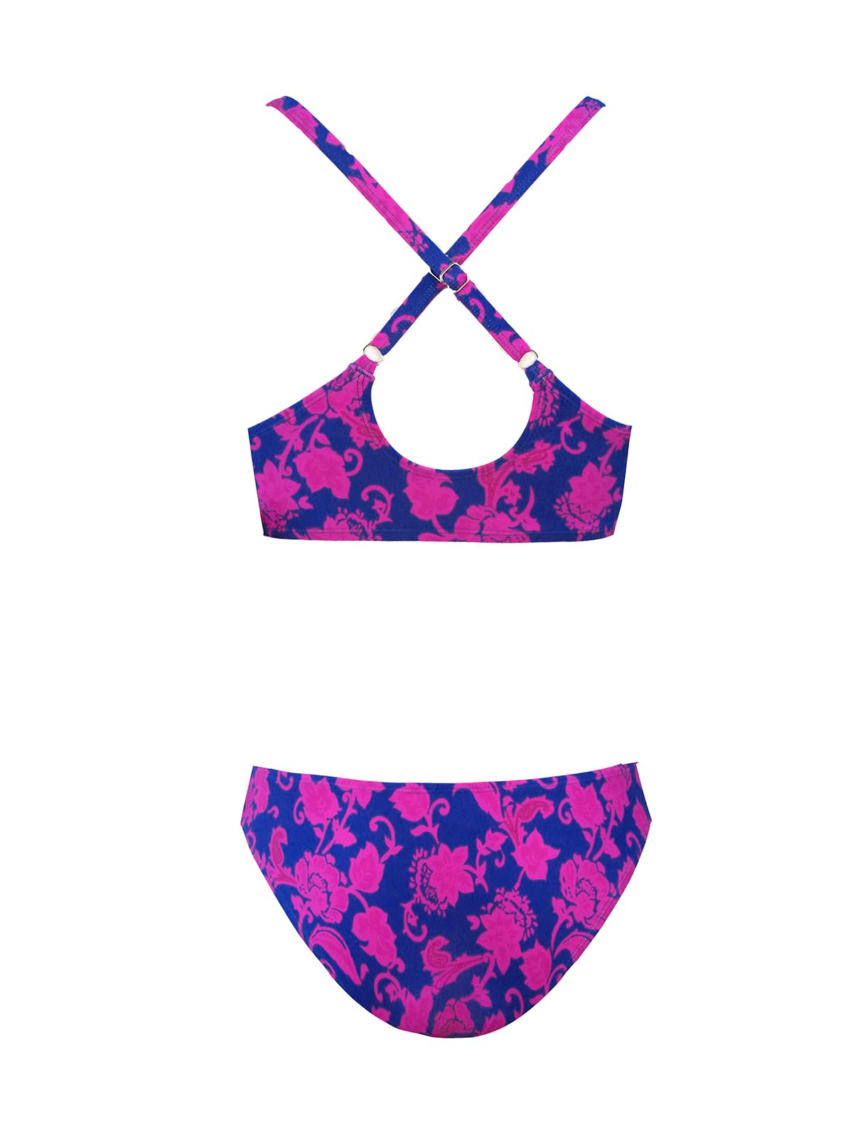 • Design: The Floral Printed Bikini Top Features Knotted Bunny Tie Detail and Back Crisscross Adjustable Shoulder Straps. Low Rise Bikini Bottom Offers a Modern Silhouette. About Cup Style: With Removable Soft Pad.