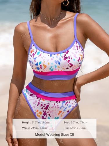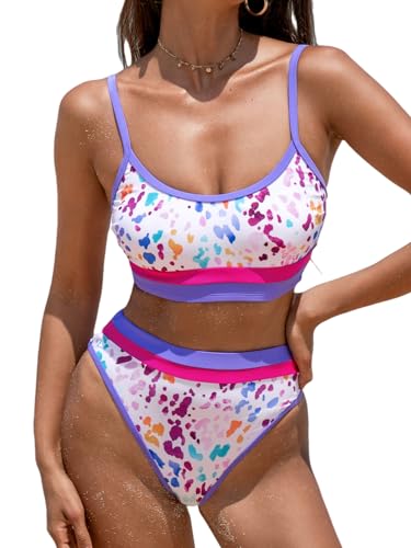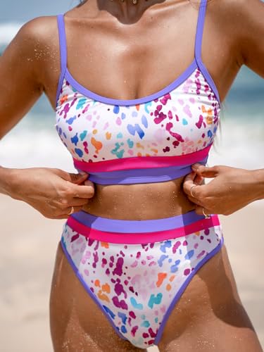 • Design: This color block bikini sets offers a flattering scoop neck and colorful leopard pattern for a look that's as sweet as a summer day. The cheeky two piece swimsuit with adjustable straps design and high waisted bottom offers both dramatic flair.