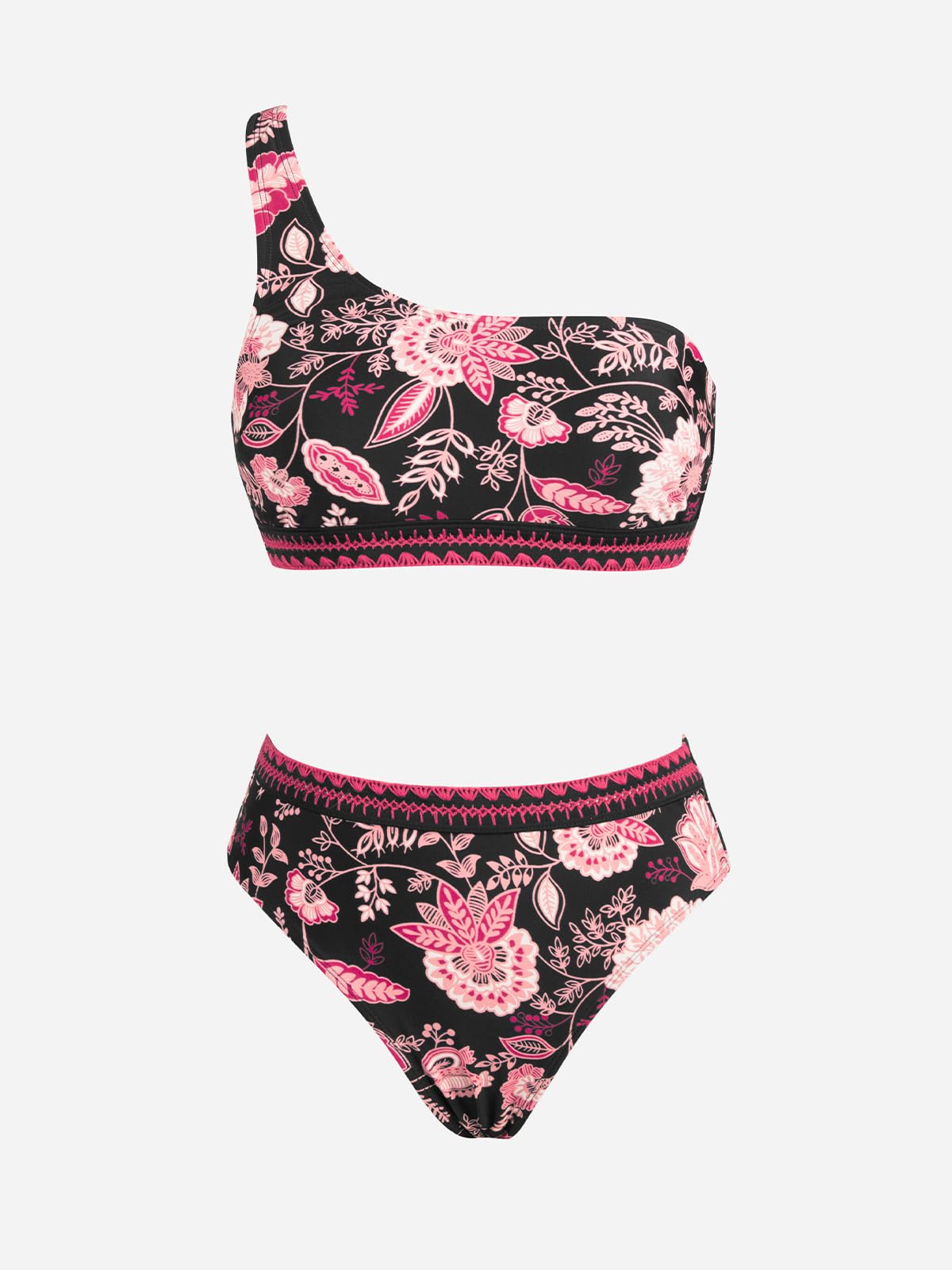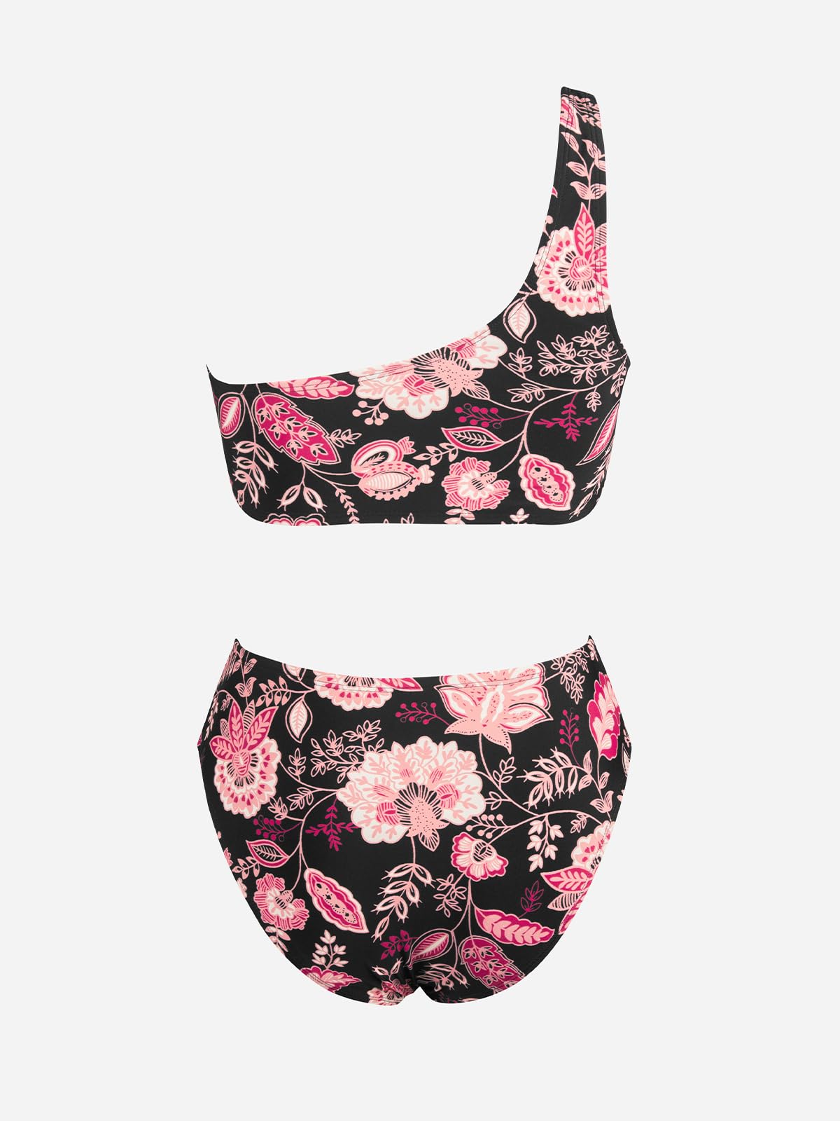 • Design: The two piece bathing suit featuring with one shoulder design, retro floral print and stitching detail. With its mid rise bottom, it offers a flattering fit at the waistline, ensuring both style and coverage.