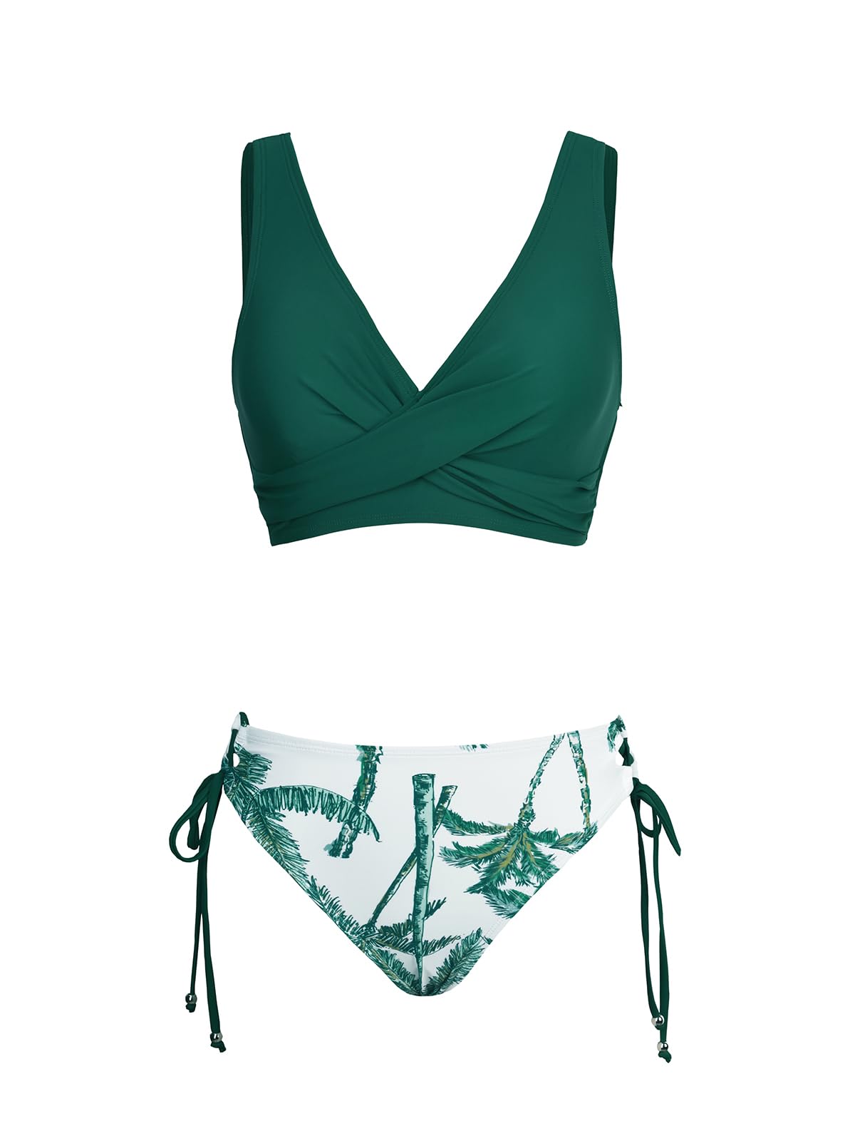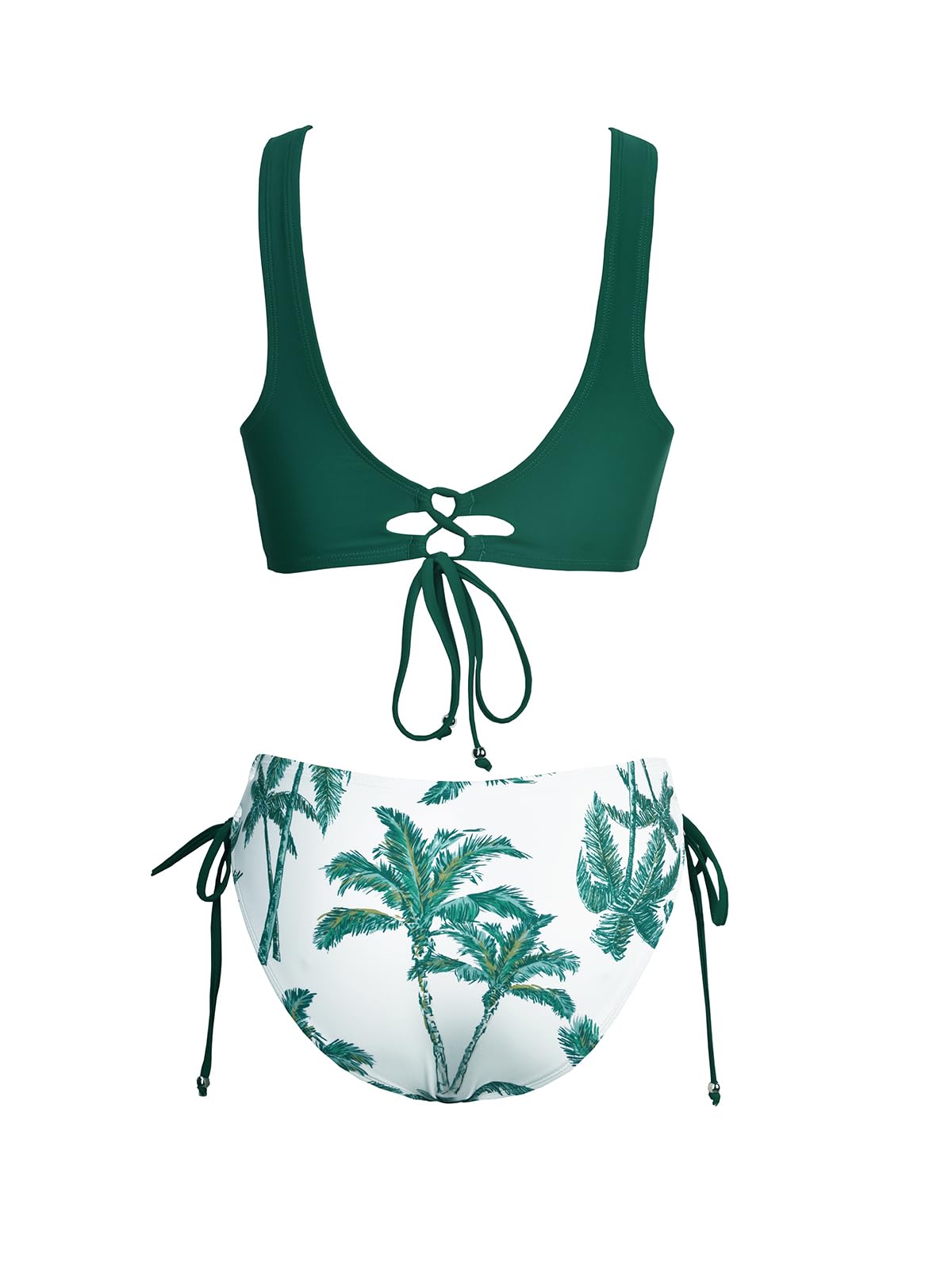 CUPSHE Women's Bikini Swimsuit Floral Print Tie Side Twist Front Two Piece Bathing Suit,M