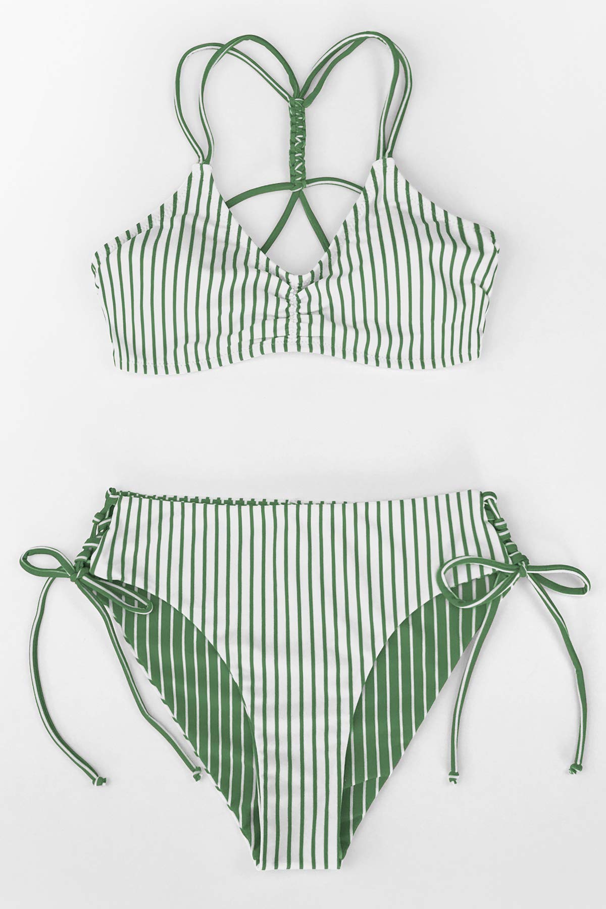 CUPSHE Women's Bikini Swimsuit Striped Reversible Bottom Lace Up Two Piece Bathing Suit, M