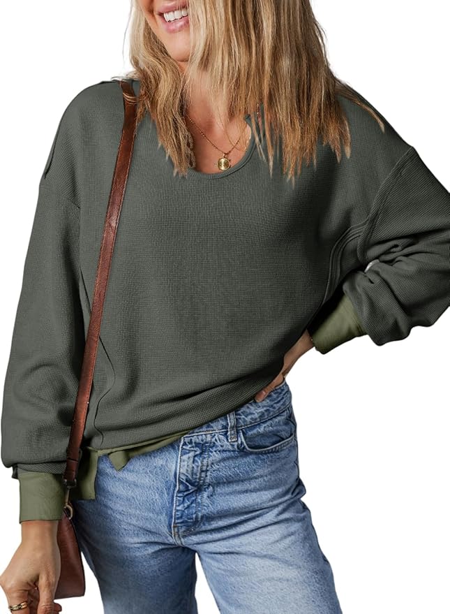 Dokotoo Womens Winter Fall V Neck Waffle Knit Tops Cropped Sweaters Long Sleeve Pullover Crop Top