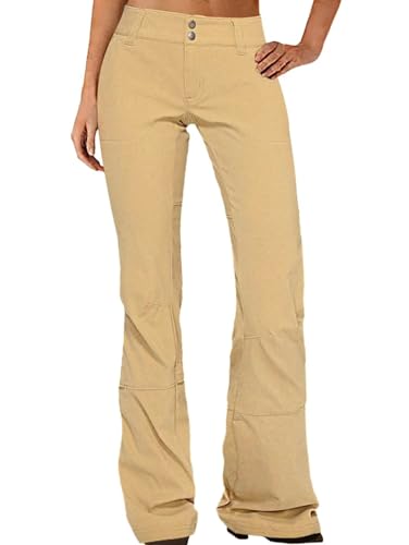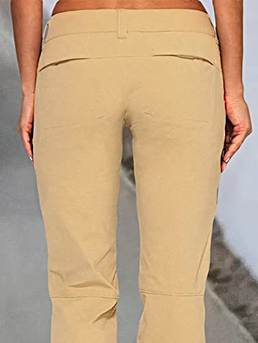 Flamingals Women's Casual Flap Pocket Cargo Pants Button Front Wide Leg Baggy Jeans Khaki Yellow XL