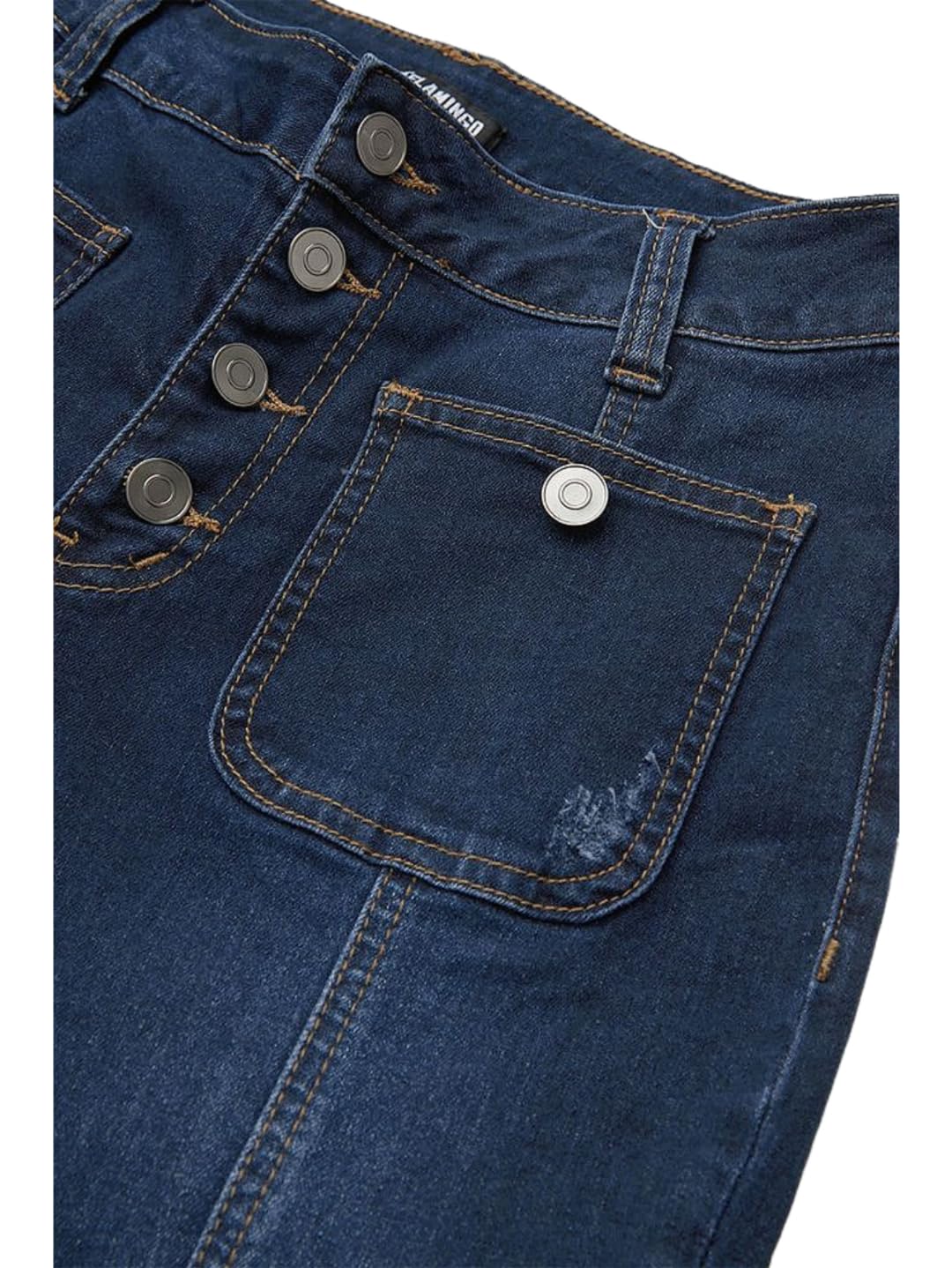 Flamingals Women's Distressed Raw Hem Cropped Skinny Jeans Mid Waist Casual Pants Dark Blue M