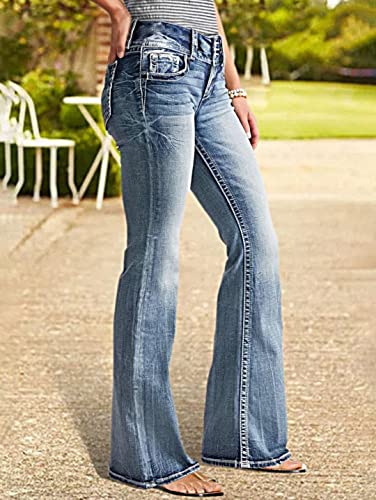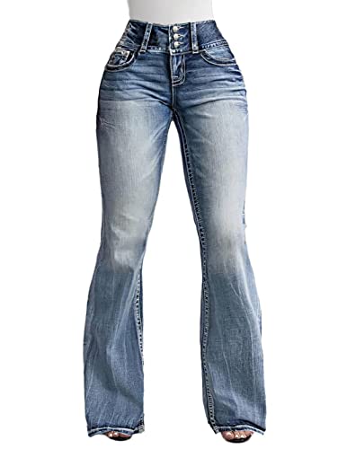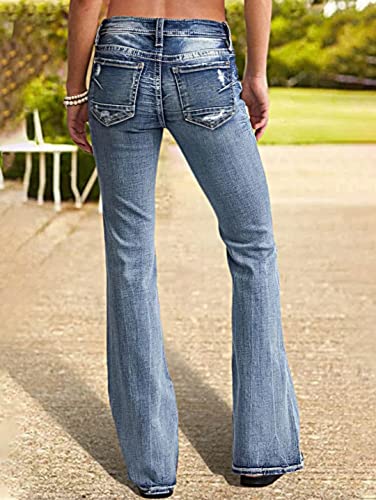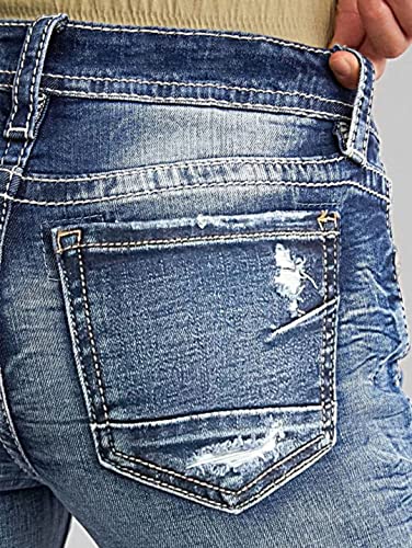 Flamingals Women's Ripped Button Front Jeans Mid Waist Casual Pants Mid Blue 2XL