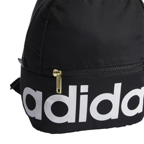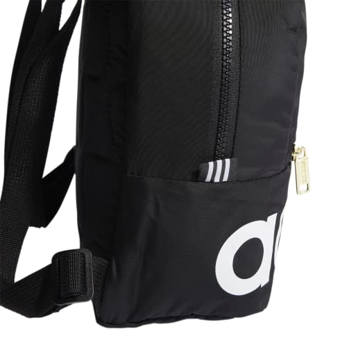 adidas Linear Mini Backpack Small Travel Bag, Black/White/Gold, 10.5 inch x8.5 inch x5 inch