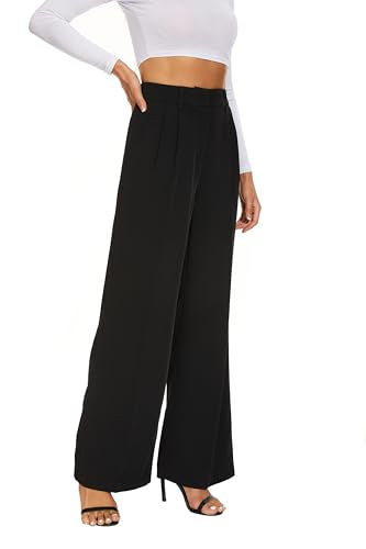 KICZOY Women's Wide Leg High Waist Wide Leg Pants Loose Fit Back Elastic Waist Pleated Front Trousers for Work Casual Black