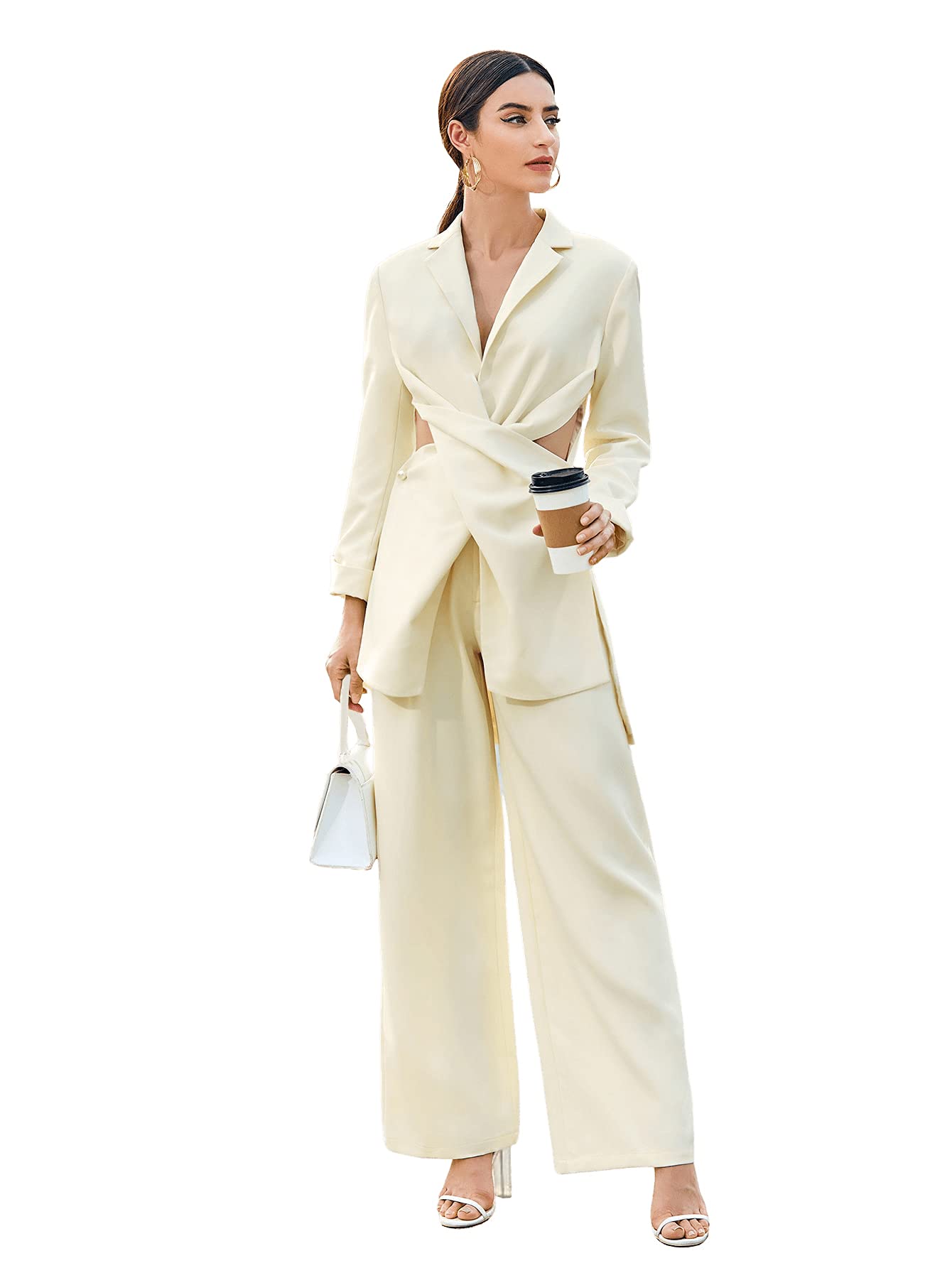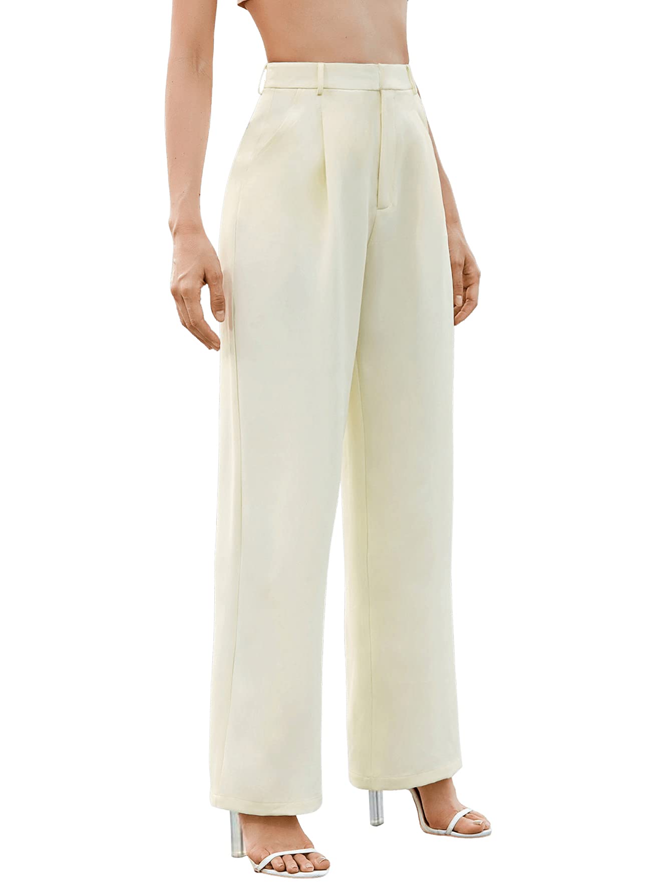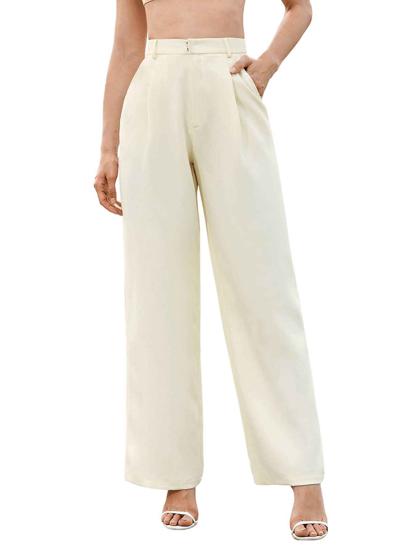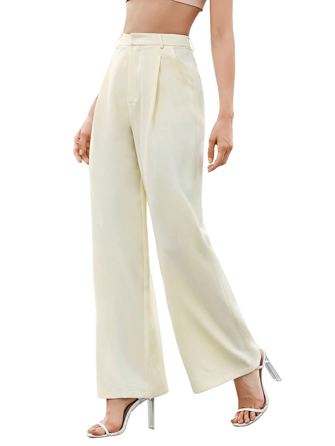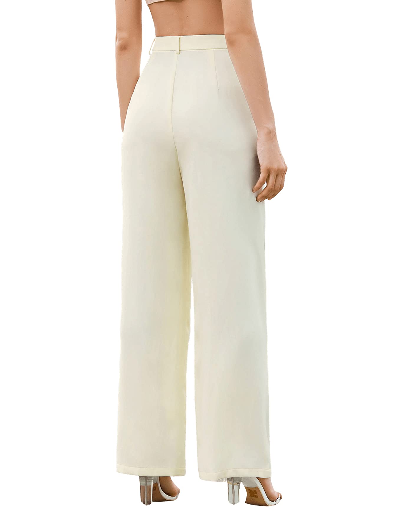 SweatyRocks Women's Elegant High Waist Solid Long Pants Office Trousers Beige L