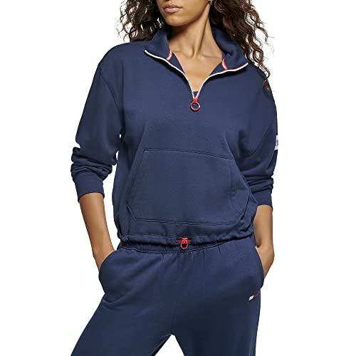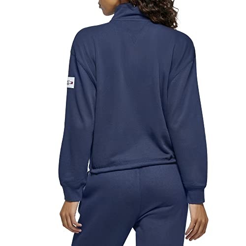 Tommy Hilfiger Women's Bungee Hem Quarter Zip Pullover, Navy, Large