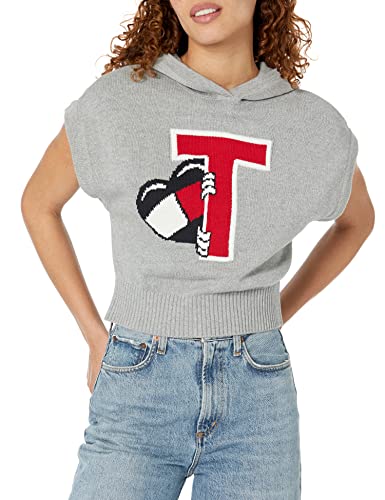 Tommy Hilfiger Women's Casual Pullover Sweatshirt Short Sleeve Hoodie, Medium Heather Grey