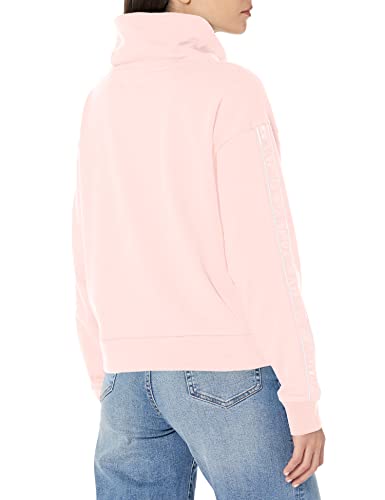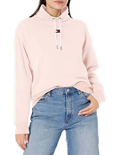 Tommy Hilfiger Women's Cowl Neck Logo Flag On Chest Pullover Draw Cords Long Sleeve, Rose, X-Large