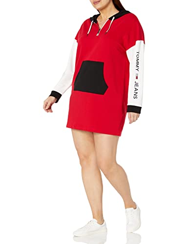 Tommy Hilfiger Women's French Terry Colorblock Hoodie Sneaker Dress, Scarlet/Black