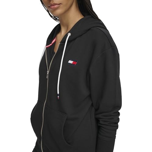 Tommy Hilfiger Women's French Terry Relaxed Fit Full Zip Hoodie, Black
