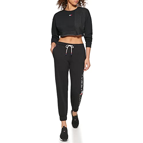 Tommy Hilfiger Women's Long Sleeve Logo Pullover Sweatshirt, Black, Small