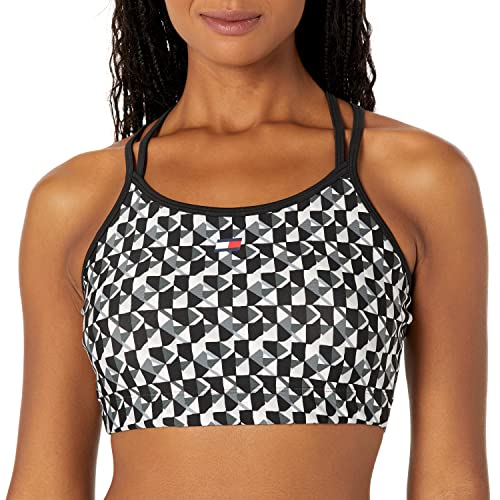 Details: This Tommy Hilfiger Sport womens Sport Top is a low impact bra tropical floral print double colorblock strap printed reflective logo cross straps in back