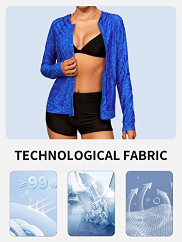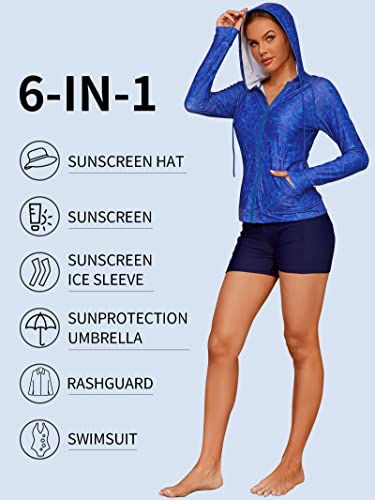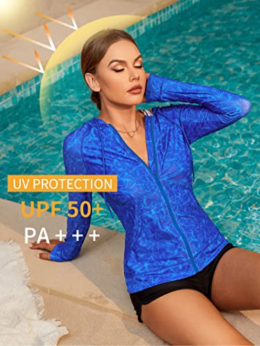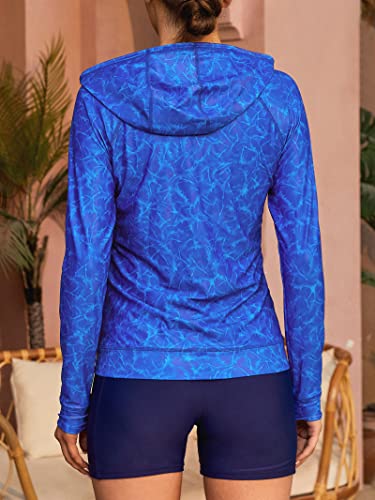 ATTRACO Women's UPF 50+ Sun Protection Swim Hoodie Shirt Long Sleeve SPF Fishing Outdoor Swimsuit Shirts Blue Small
