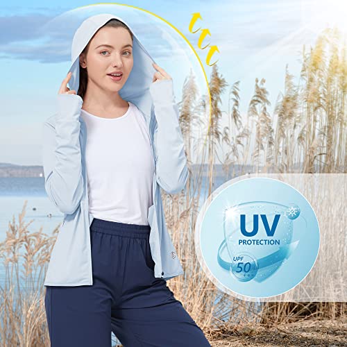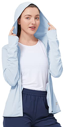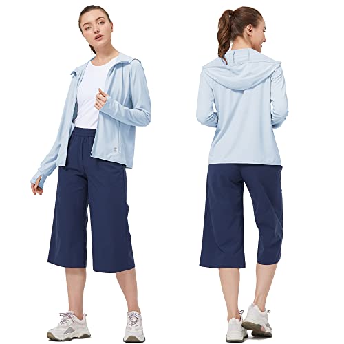CAMELSPORTS Women UPF 50+ Athletic Jacket Sun Protection Full Zip Long Sleeve Hiking Shirts Lightweight Outdoor Hoodie with Pocket Blue