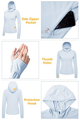 • ❤【USEFUL HOOD AND THUMBHOLES】Our women's UV protection long sleeve shirt features a practical hoodie design that protects your neck and face from sunburn. The low-profile thumbholes ensure that your sleeves stay in place and provide extended coverage for your hands.