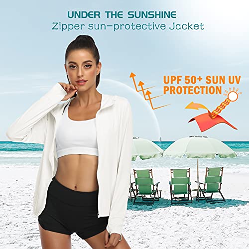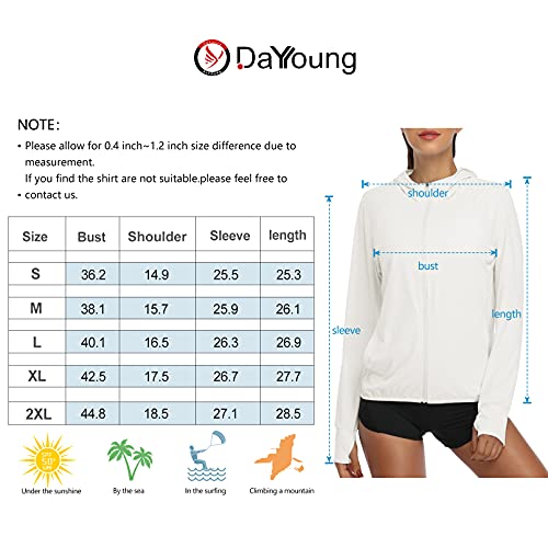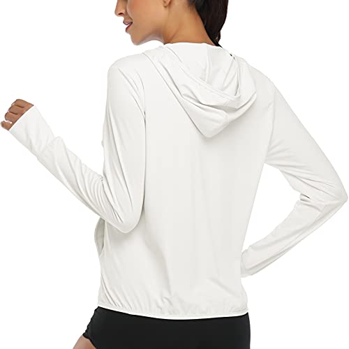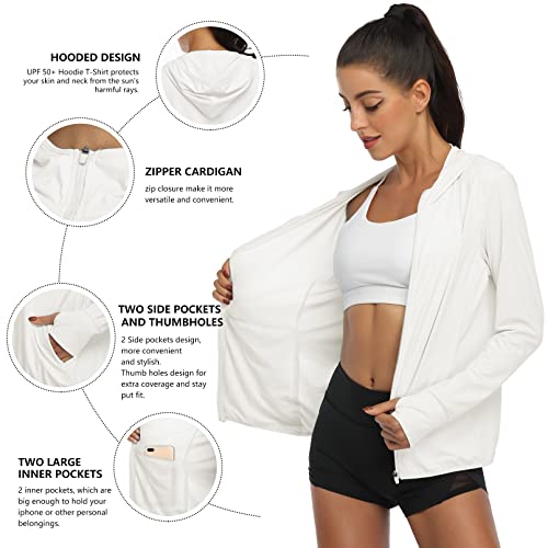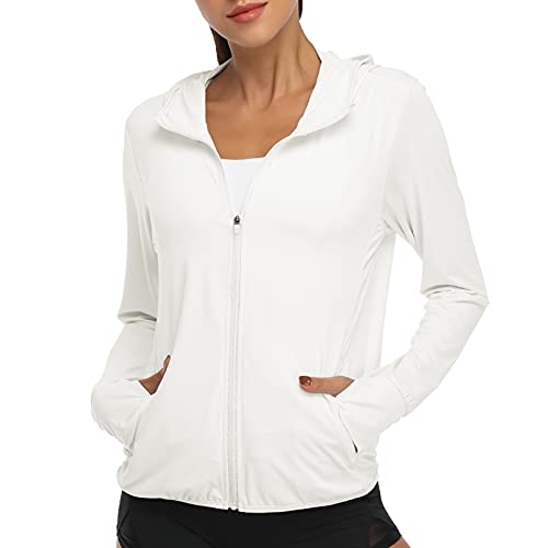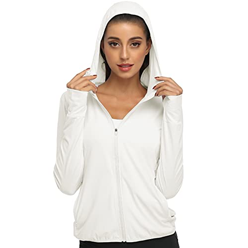 DAYOUNG Women's UPF 50+ UV Sun Protection Jacket Full Zip Hoodies Lightweight Hiking Long Sleeve Shirts Outdoor Performance with Pockets Y63-White-M