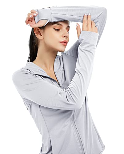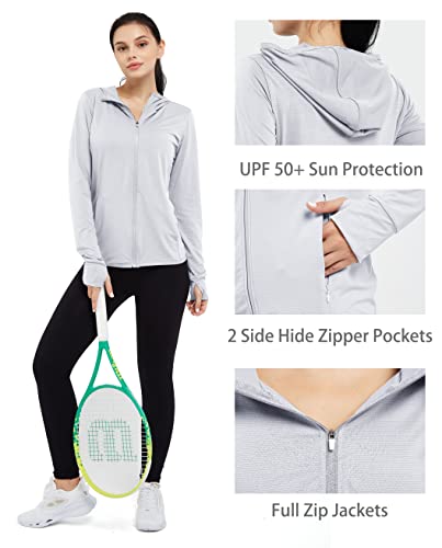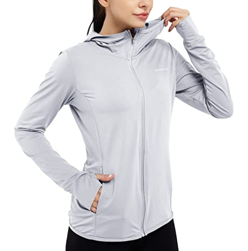 dpowien Women's Athletic Jacket Lightweight Long Sleeve UPF 50+ Hiking Shirts Full Zip Sun Protection Hoodie with Pockets