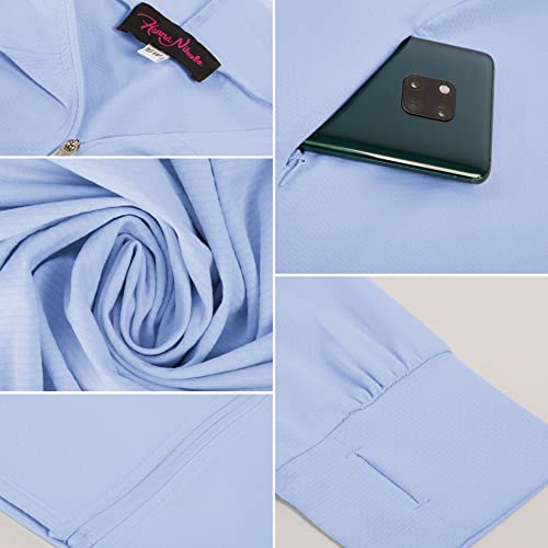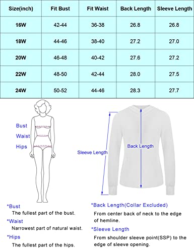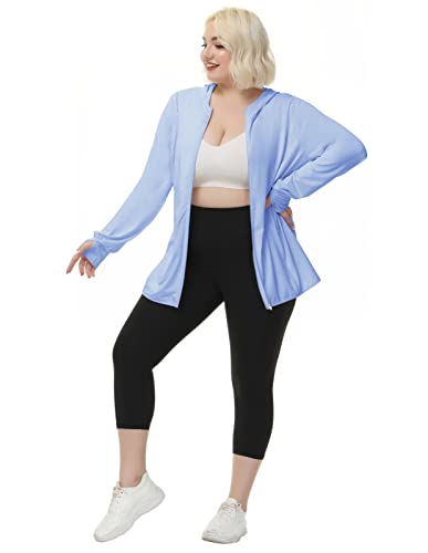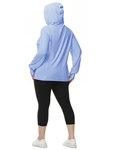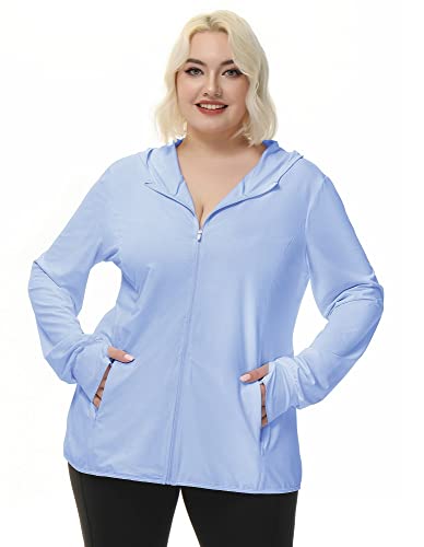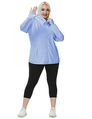 Hanna Nikole UPF 50+ Sun Protection Jacket Hoodie for Women Plus Size Long Sleeve Athletic Hiking Jacket Shirts Grey Blue 18W