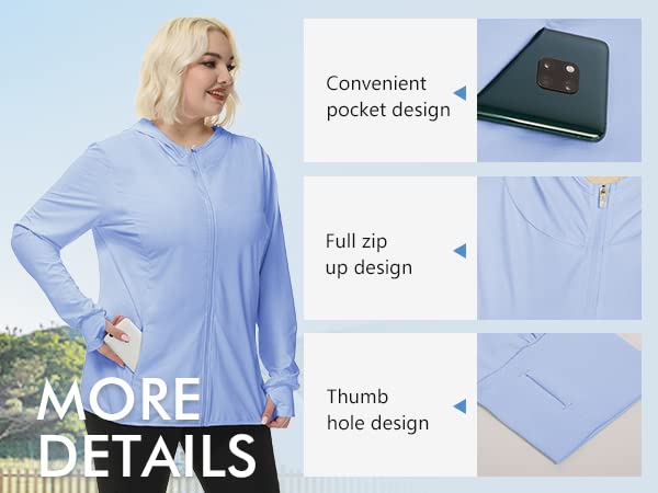 • 🌞Multifunctional Sun Jacket: This is a versatile lightweight sun jacket hoodie. Besides being used as UV protective shirts top, it can also be considered a sports jacket, perfect for all kinds of outdoor activities, such as exercising, running, hiking, fishing, beachside vacation, cycling, traveling.