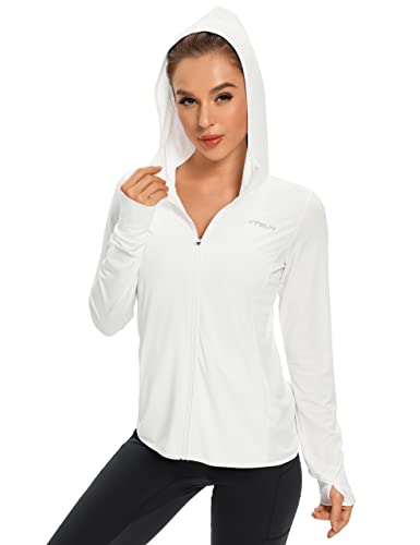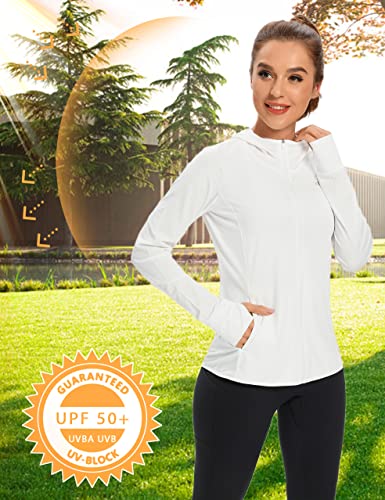 KPSUN Women's UPF 50+ UV Sun Protection Clothing Zip Up Hoodie SPF Long Sleeve Sun Shirt Fising Hiking Outdoor Performance Jacket(White,L)