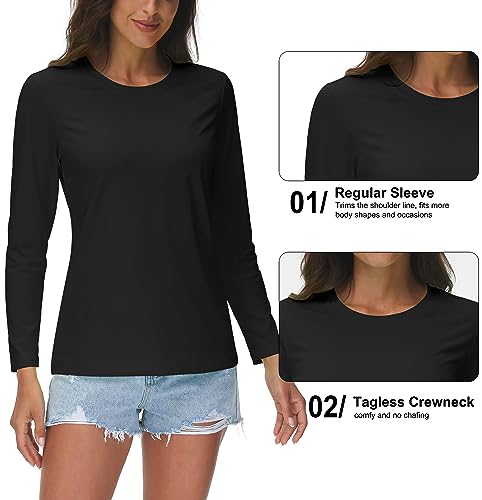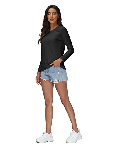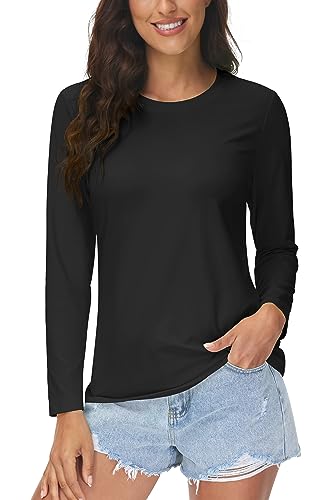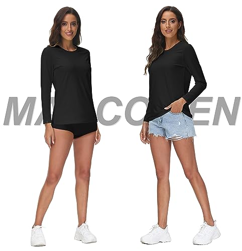 MAGCOMSEN UV Shirts for Women Long Sleeve UPF 50 Shirts Black Tee Shirts Rashguard Tops Lightweight Fishing Running Shirts Dry Fit,XL