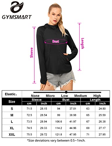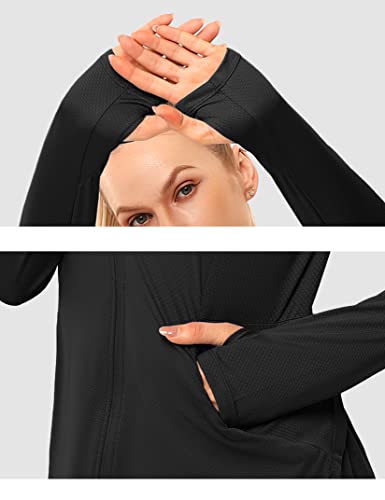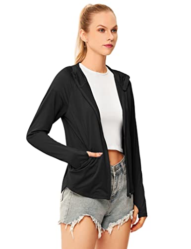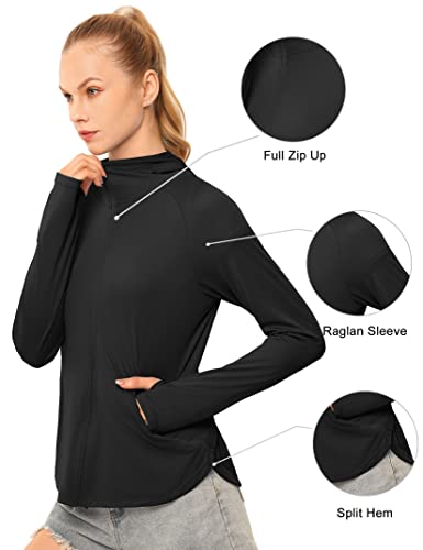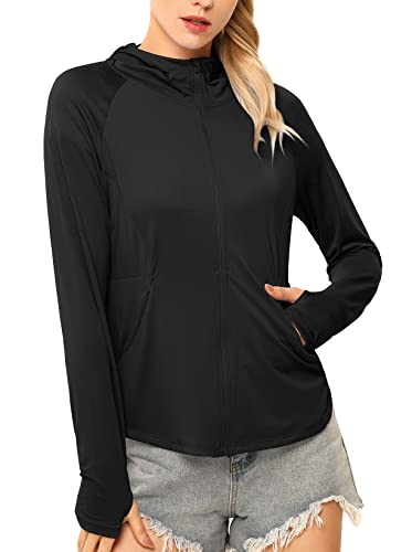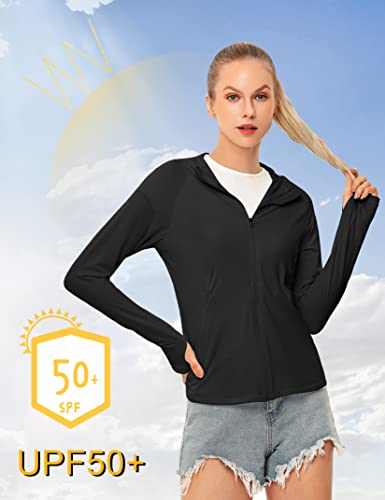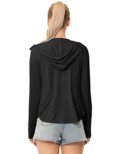 SPF Shirts for Women Long Sleeve UPF 50+ Sun Protection Hoodie Jacket Lightweight with Pocket Black S