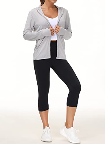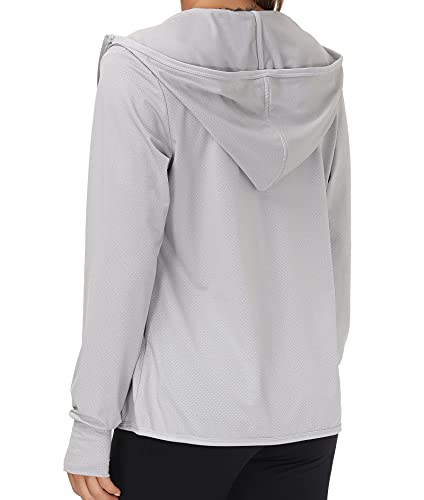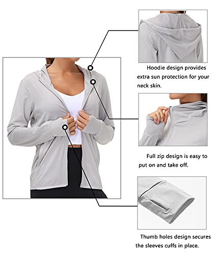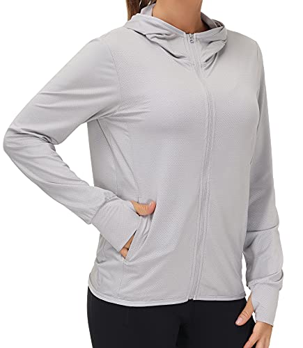 Tmustobe Women's UPF 50+ Sun Protection Hooded Jacket Long Sleeve UV Shirts With Pockets Hiking Outdoor Performance (Gray, Large)