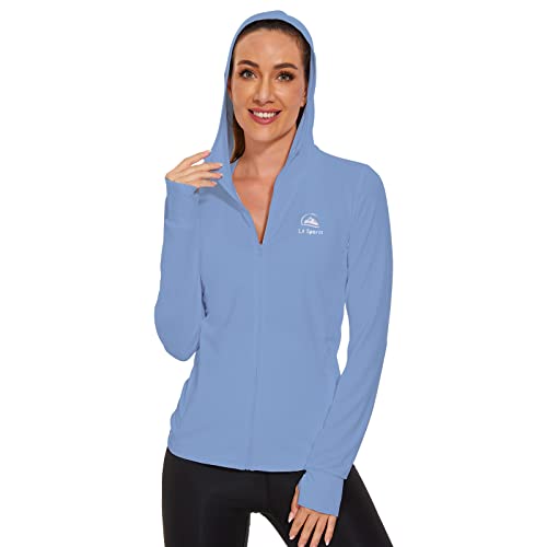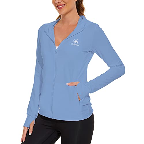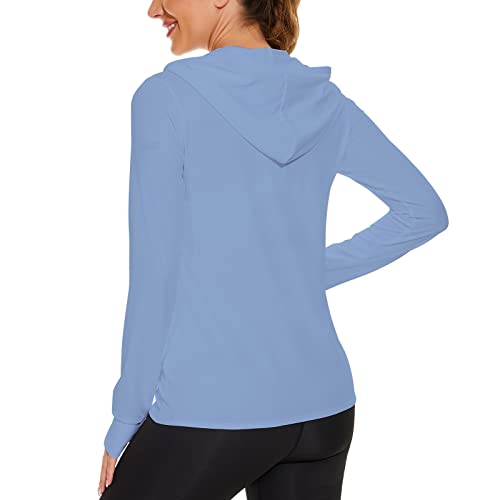 Women's Long Sleeve Fishing Hoodie Shirts Lightweight UPF 50+ Sun Protection Jacket Athletic Hiking Zipper Pockets Blue S