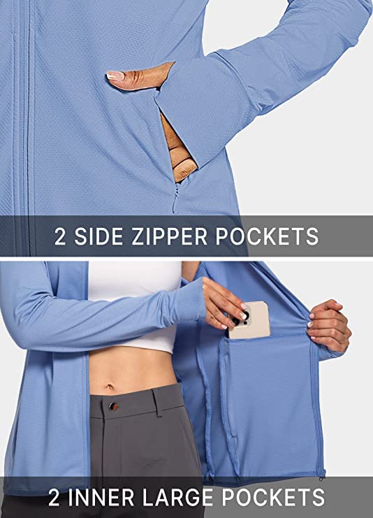 • HOODIE & THUMB HOLES DESIGN: Effective sun shirts with hood give you more neck protection; 4 UTILITY POCKETS for keeping personal belongings, like ID card, cell phone and keys