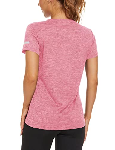 Womens Short Sleeve T Shirts UPF 50+ Work Shirts Summer T-Shirts Gym Shirts Workout Shirts Quick Dry T-Shirt Top Bowling Shirt Pink