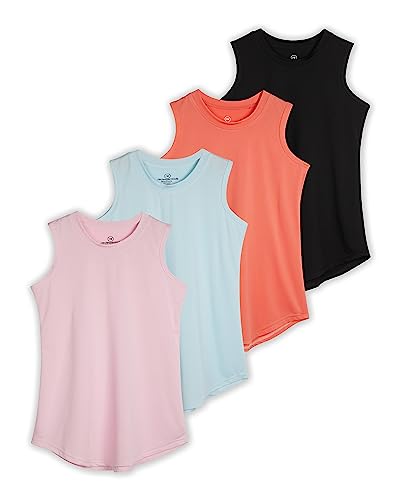 4 Pack: Girls Active Athletic Quick Dry Fit Tank Top Tee Essentials Soccer Sports Tops Tees Shirts Tshirts Gym Young Teen Yoga Gymnastics Sleeveless Summer Essentials Undershirts - Set 4, M (10-12)