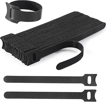 60 PCS 8 Inches Reusable Cable Ties, Adjustable Cord Straps, Wire Organizer, Cord Wrap and Hook Loop Cable Management - Black