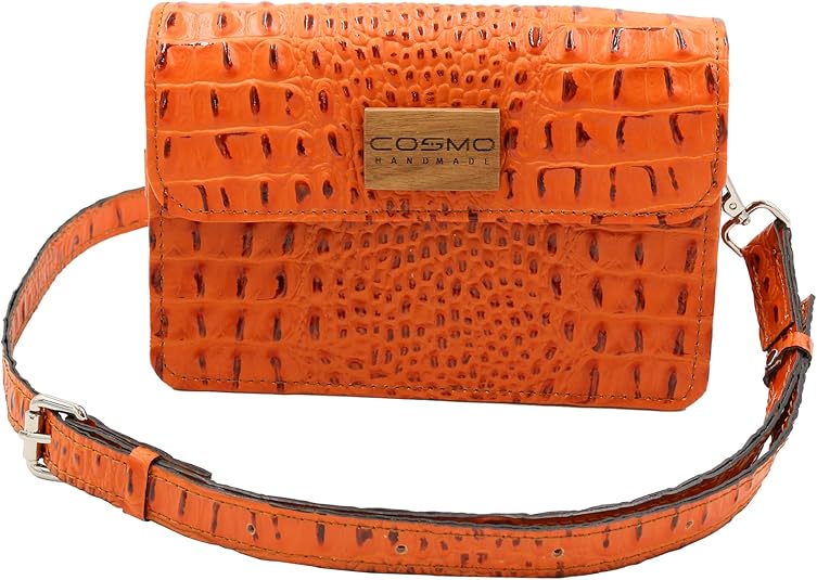 Adara Croc-Embossed Medium Genuine Leather Crossbody Bag - Elegant Orange Purse with Adjustable Shoulder Strap