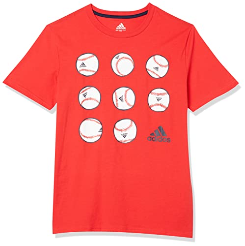 adidas Boys' Little Short Sleeve Cotton Baseball Novelty T-Shirt, Vivid Red, 7