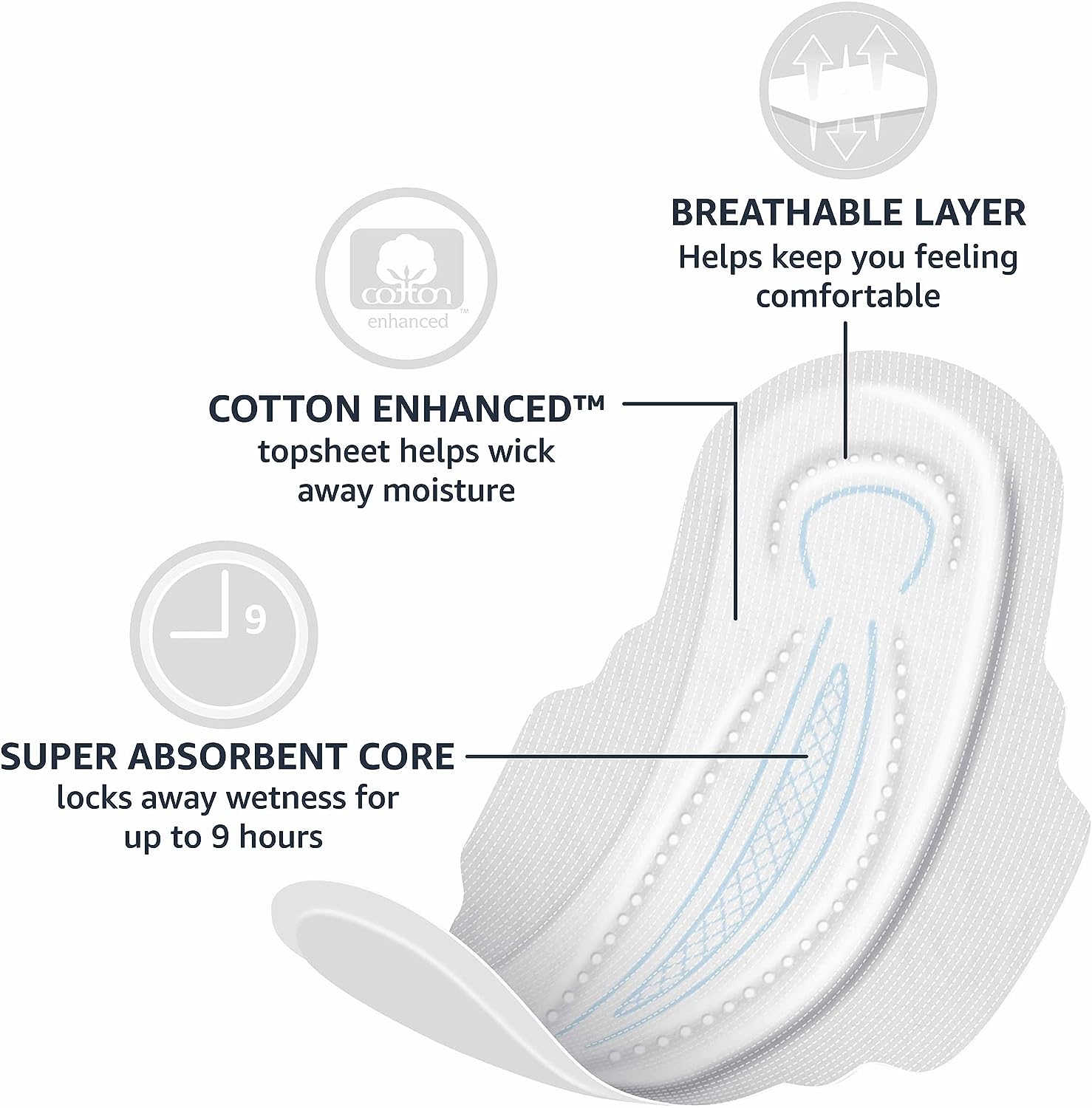 • Alexa voice shopping enabled: to place your next order, just say, “Alexa, add Amazon Basics Maxi Pads to my cart”
