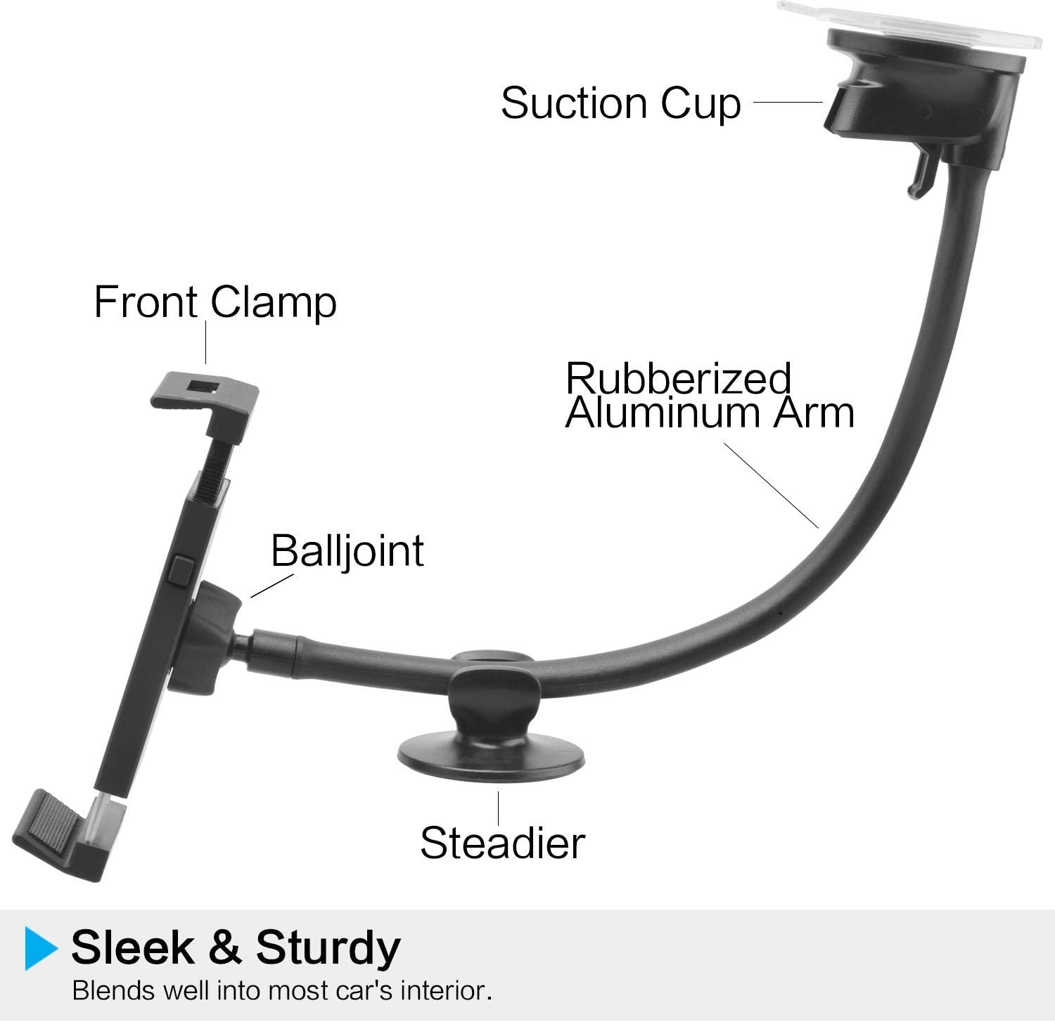• [Flexible Long Arm] Premium extra lengthens long arm made of thick rubberized Aluminum pipe up to 13 inches, make your tablet/cell phone close to you for your easy reach and operation. ▶ Especially useful for windshield and uneven dashboard.