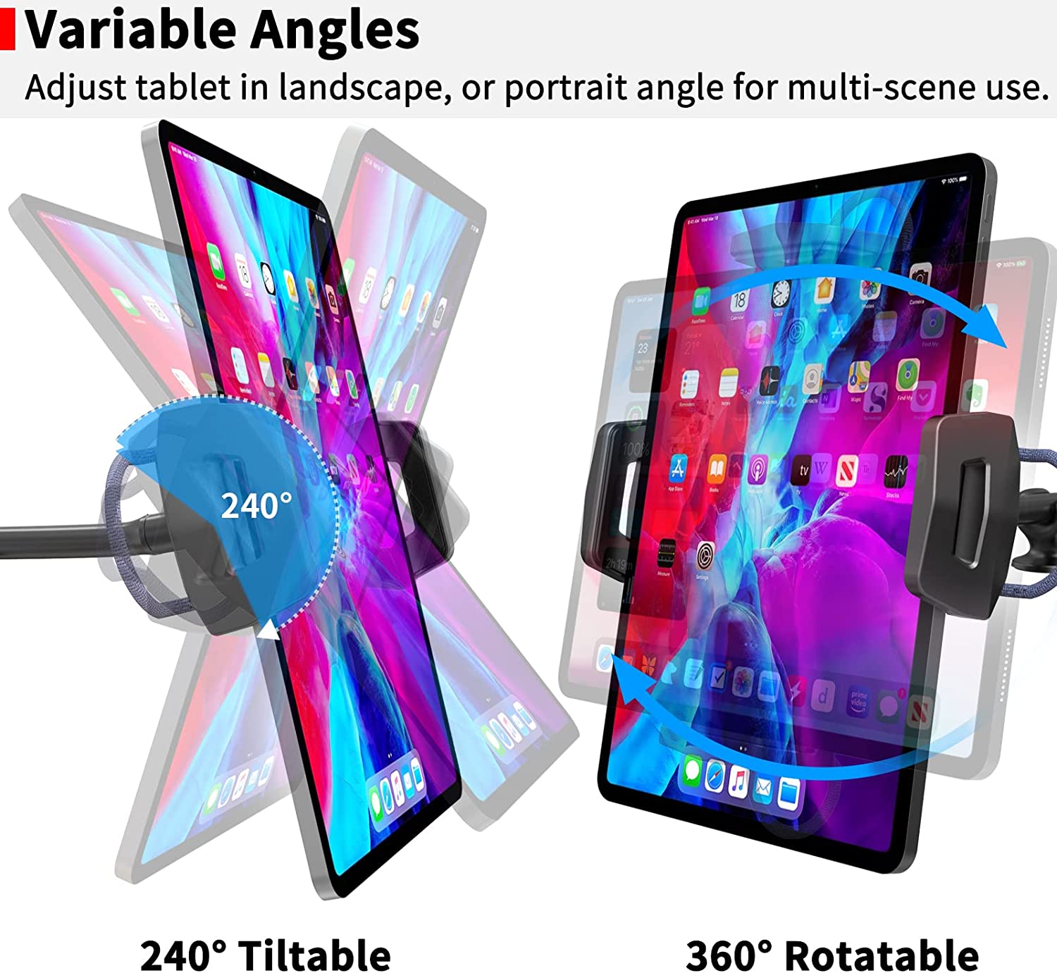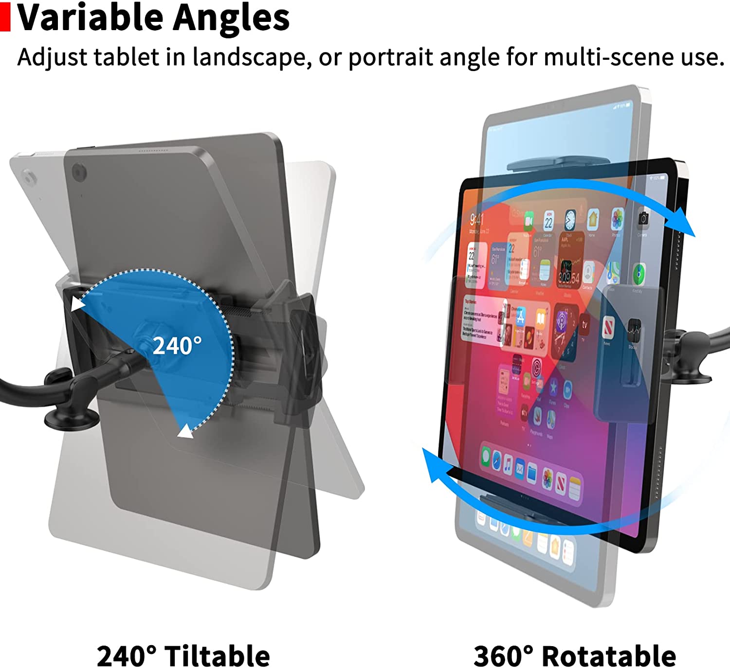 • [Super Hands-Free Navigation] It is amazing to have a larger screen for hands-free navigation during your road trip and spend more time at the wheel and eyes on the road. ▶ Full 360-degree rotation and swivel for your perfect viewing angle. ▶ It is also perfect for off-road entertainment when taking a break on a road trip.
