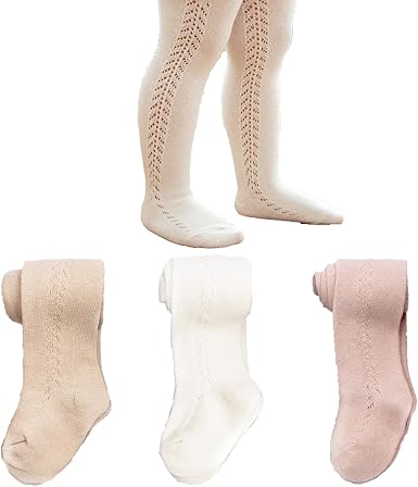 Baby Girls Tights Cable Knit Mesh Leggings Vintage Kids Stockings Cotton Pantyhose for Infants Toddlers 3 Packs