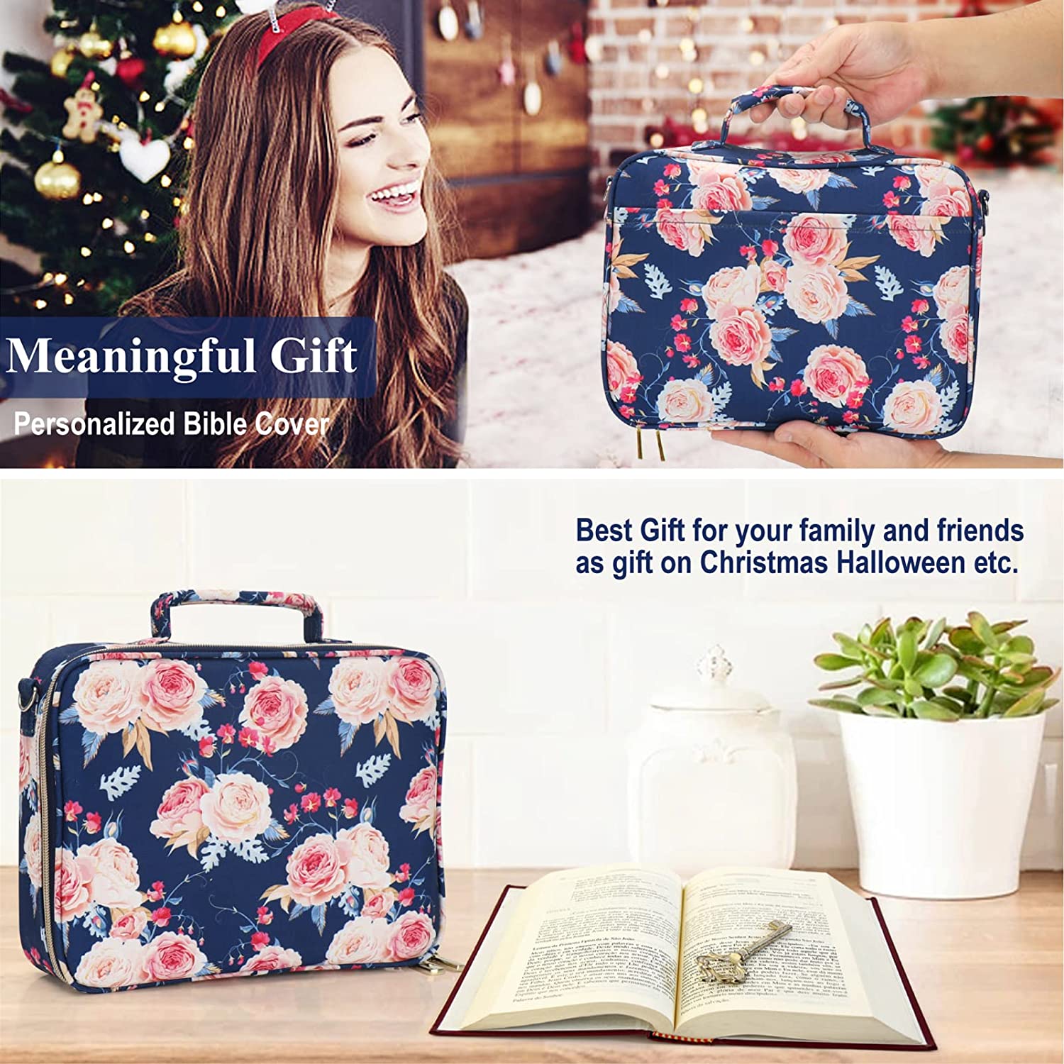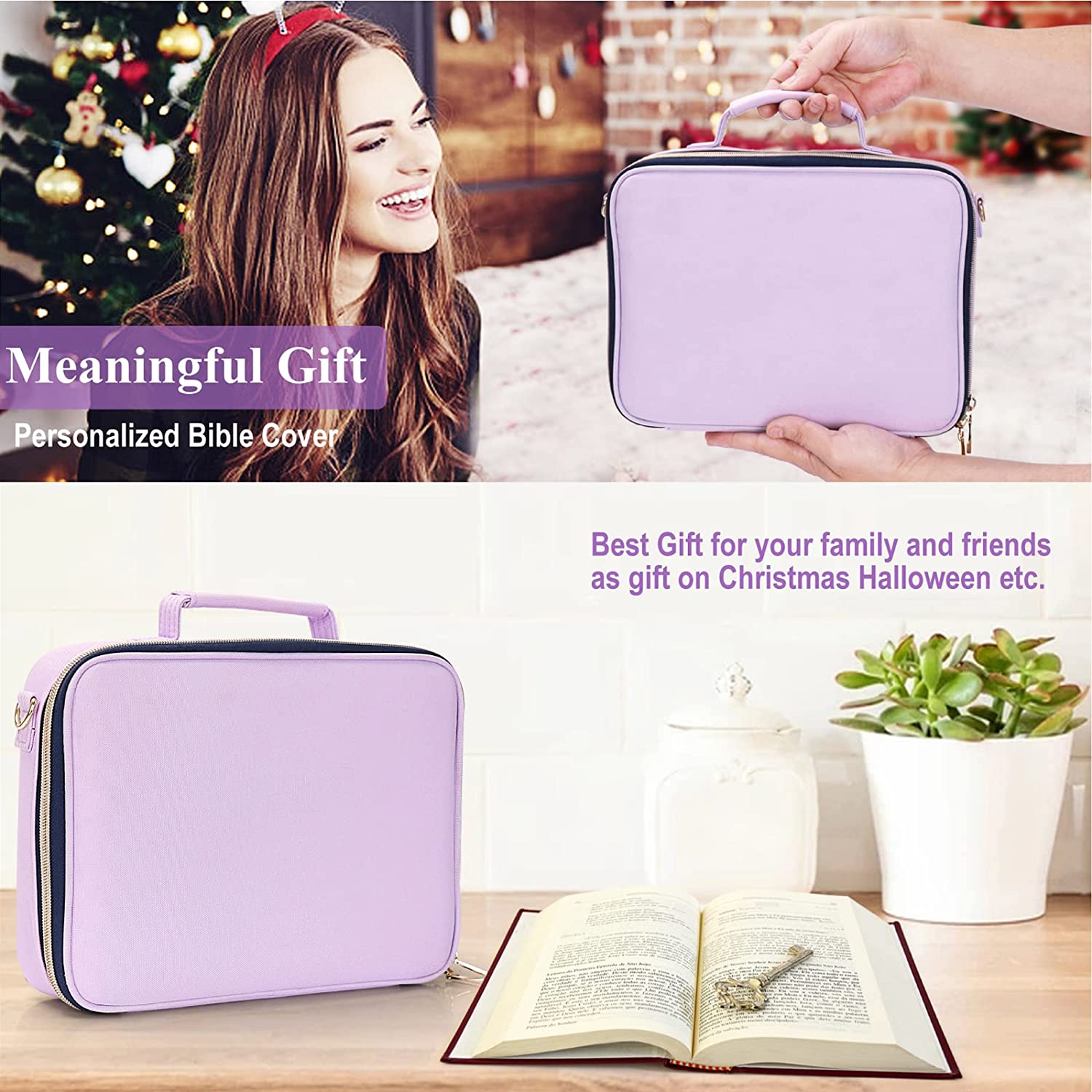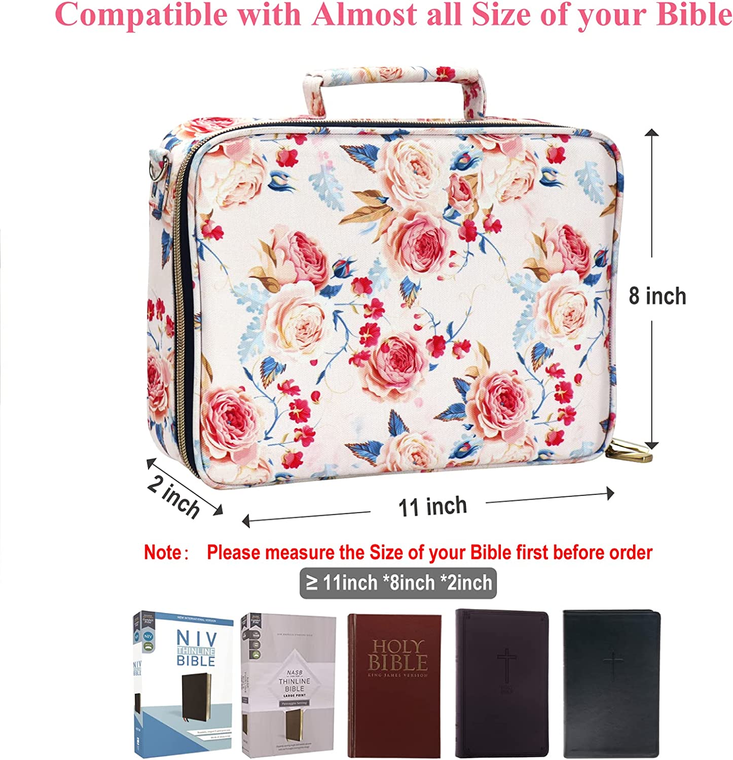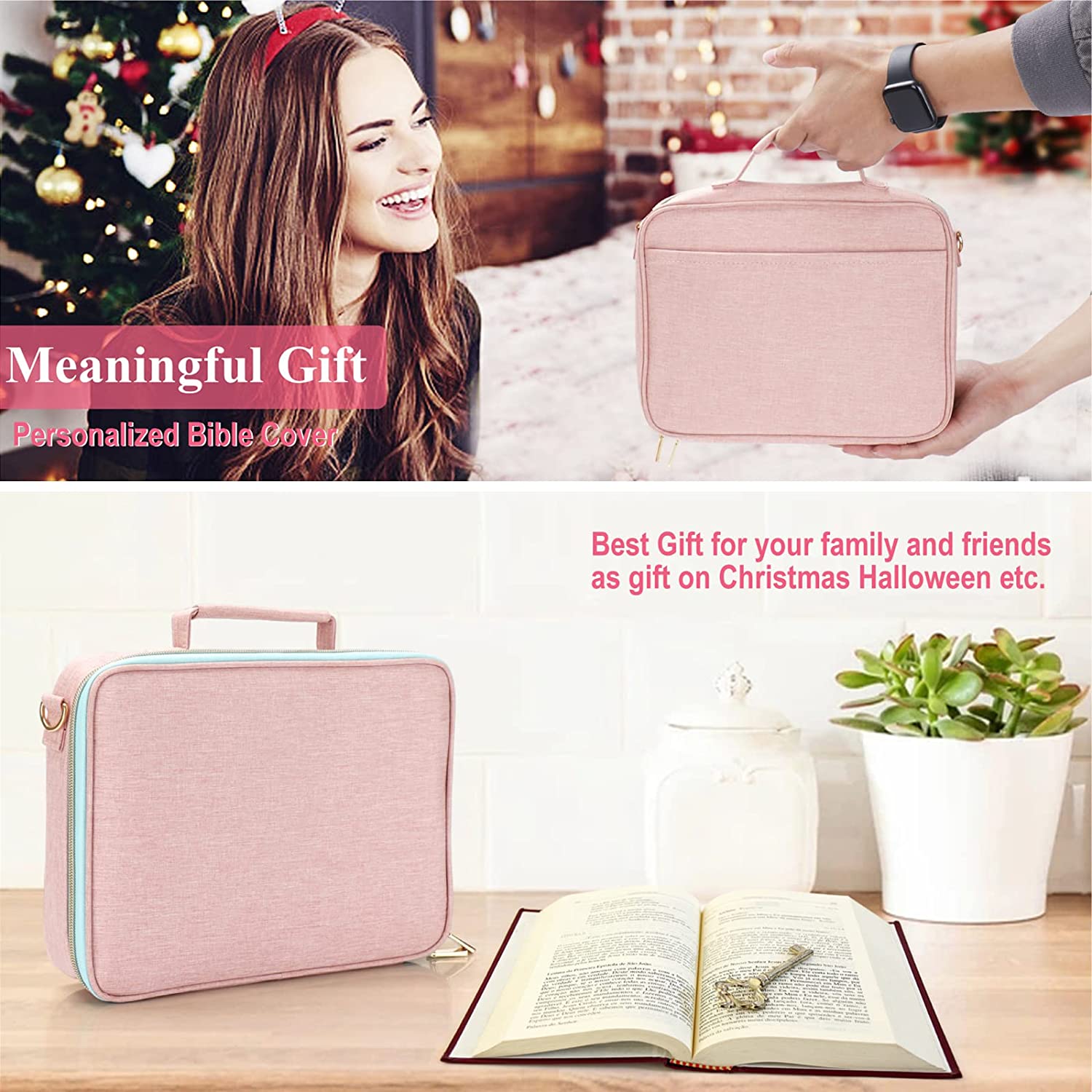 Bible Cover for Women, Bible Case Carrying Bookcase Church Bag Bible Protective Multi-Functional Bag with Handle and Zippered Pocket Adjustable Shoulder Strap, Perfect Gift for Women Girls Kids