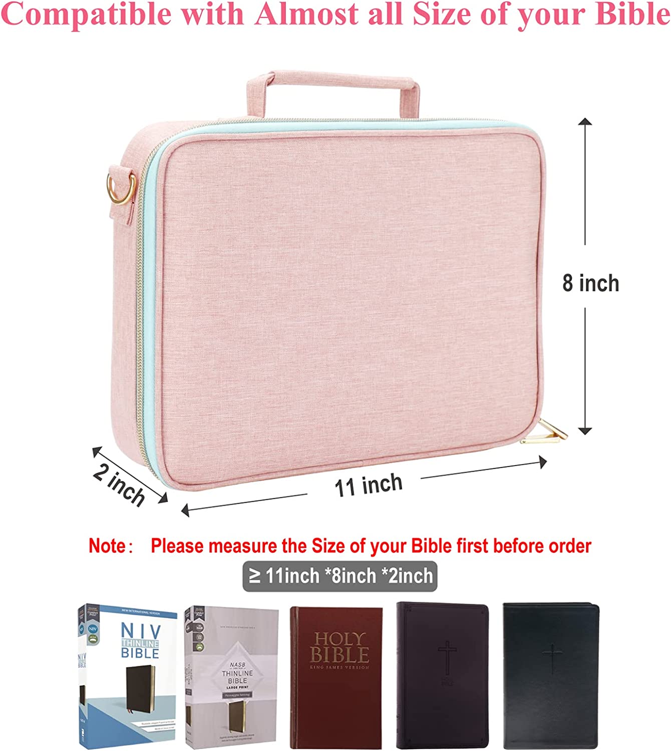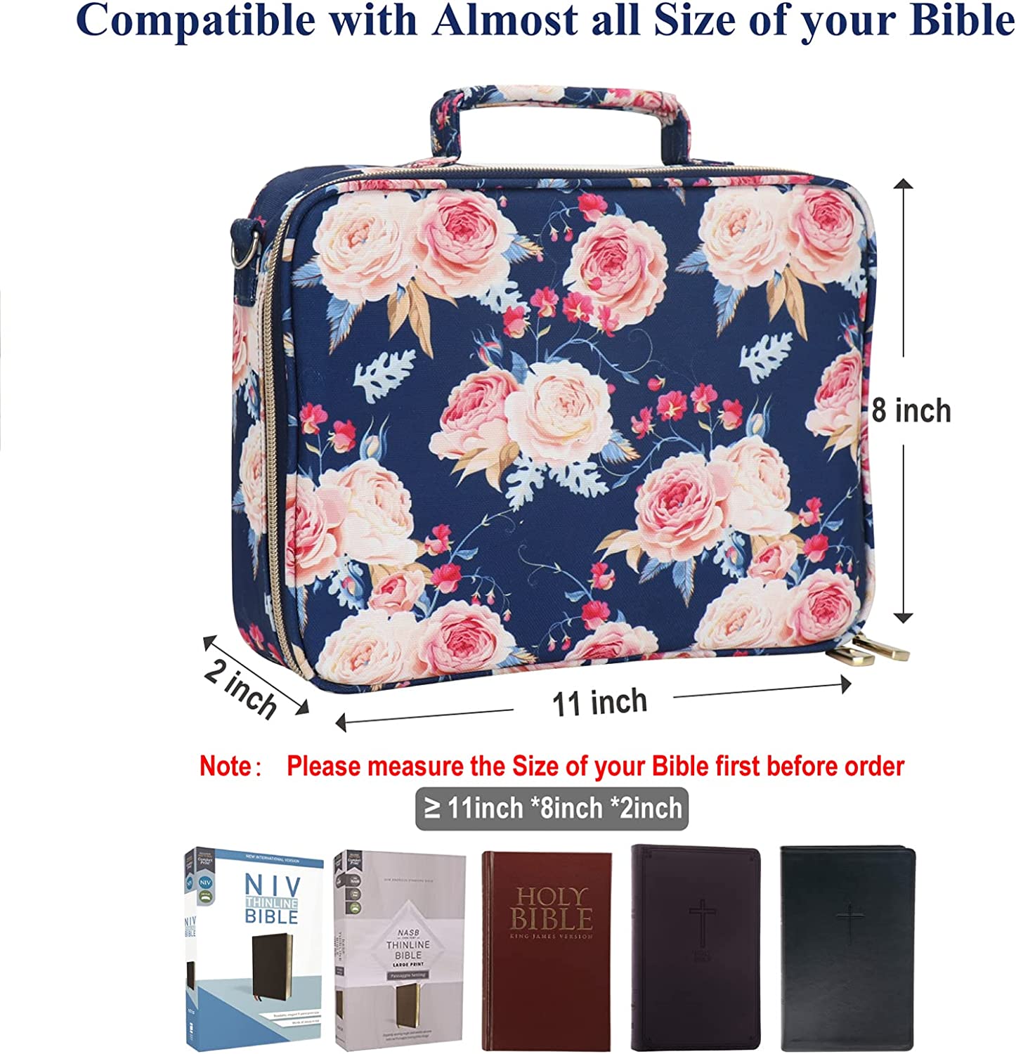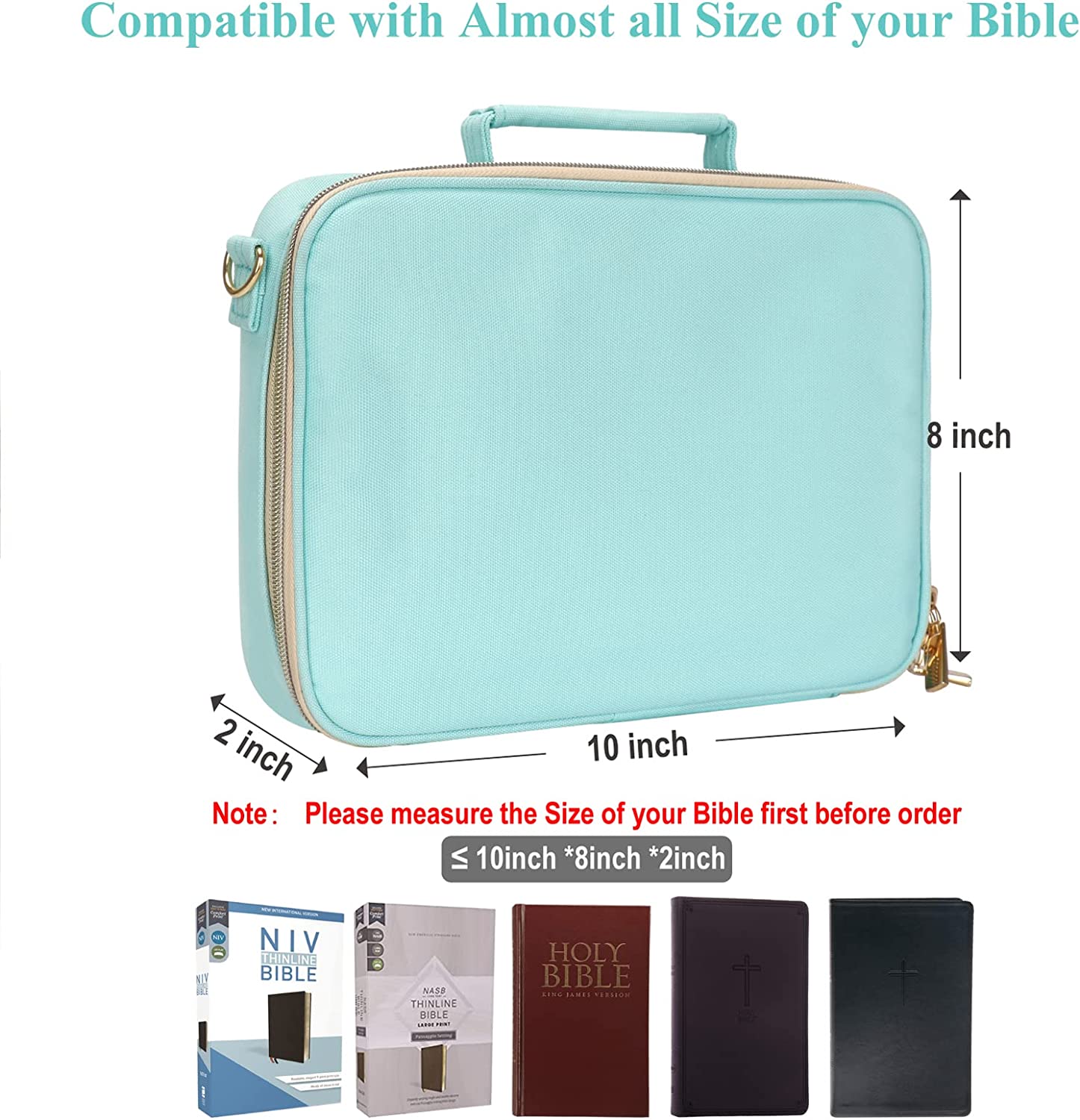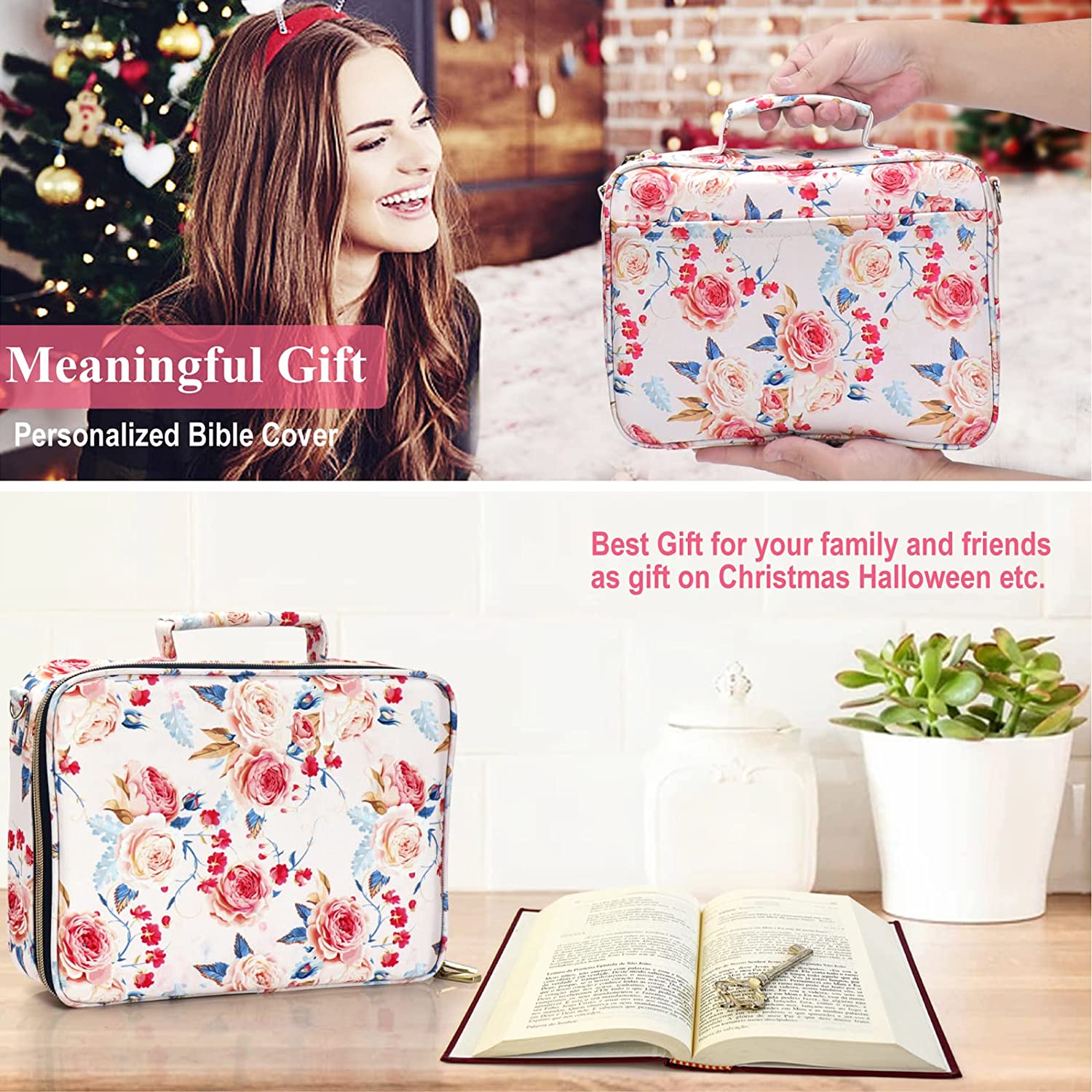 Bible Cover for Women, Bible Case Carrying Bookcase Church Bag Bible Protective Multi-Functional Bag with Handle and Zippered Pocket Adjustable Shoulder Strap, Perfect Gift for Women Girls Kids
