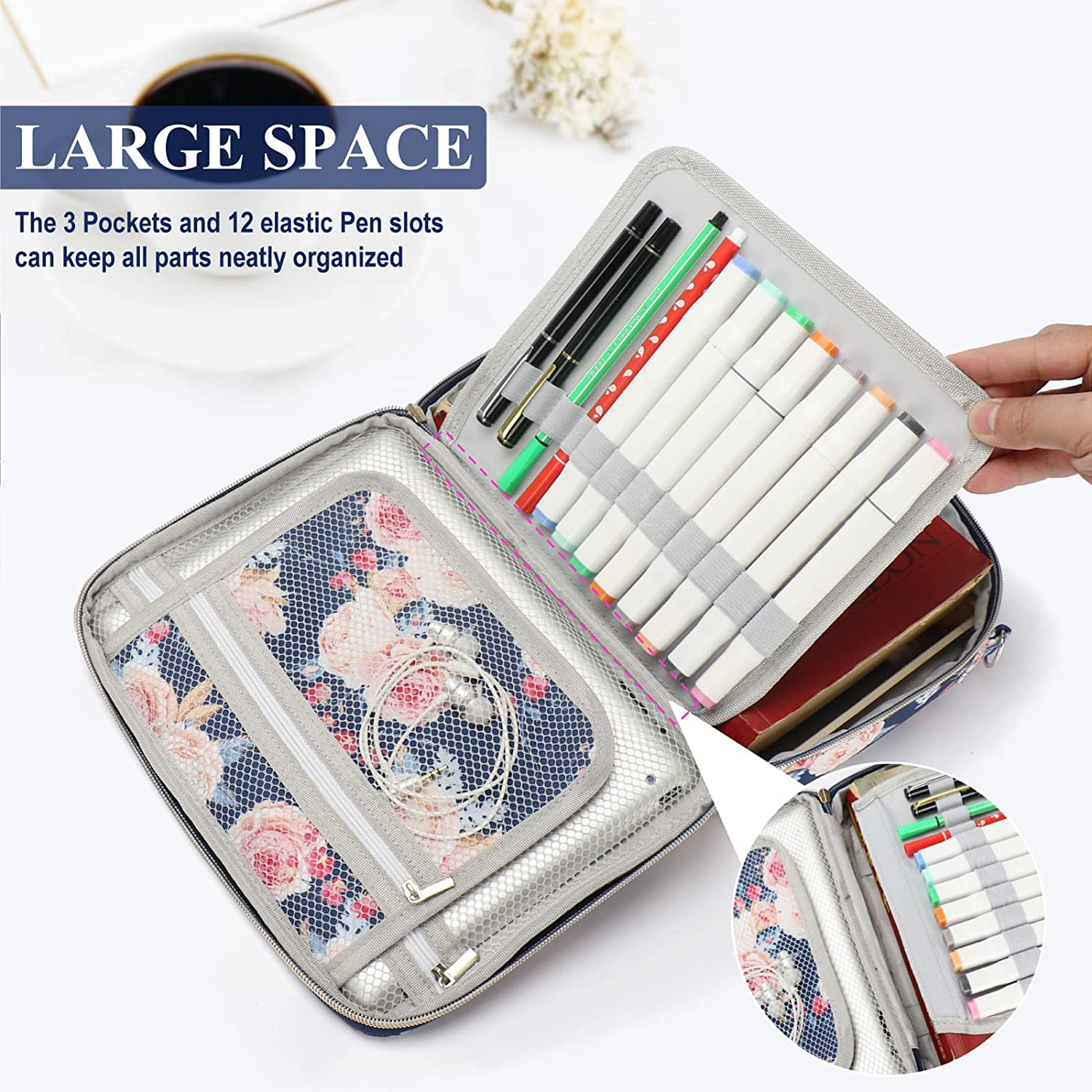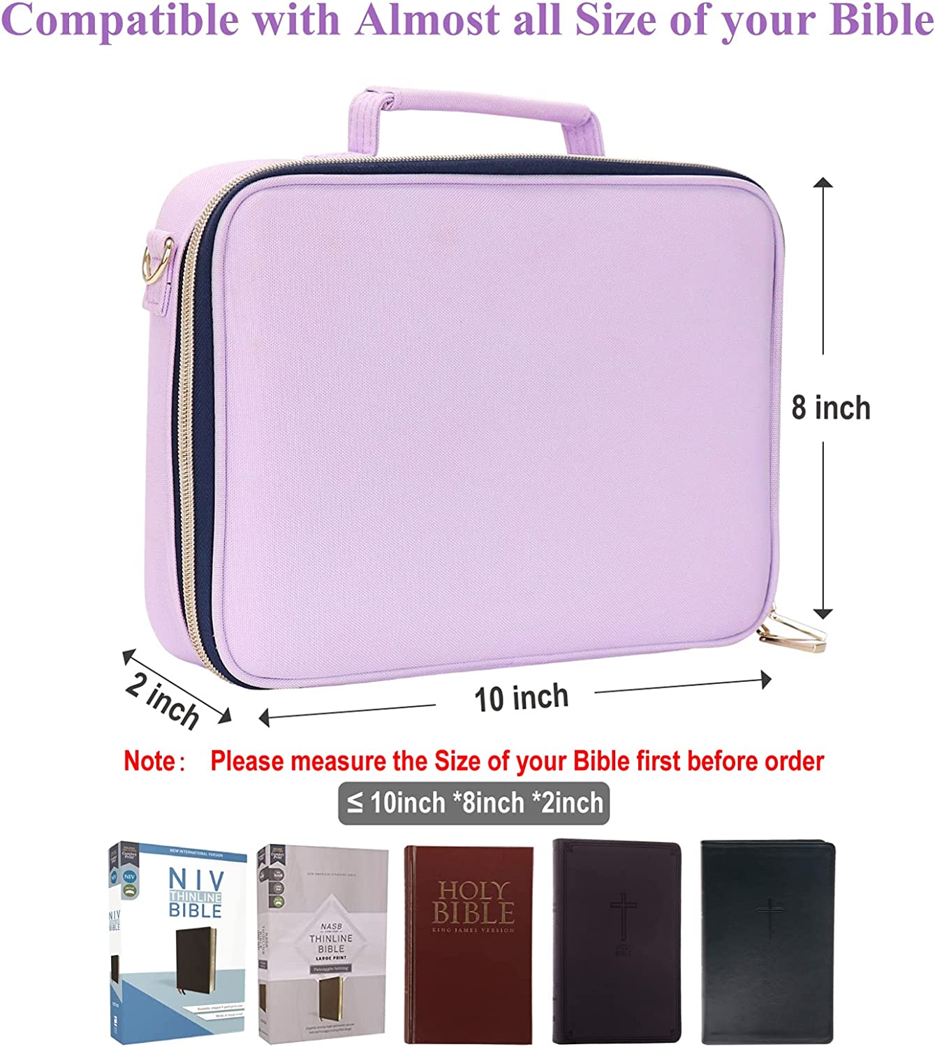 • Large Capacity: 11" x 8" x 2 ", It’s perfect for almost all size Bible. And it has extra 3 pockets (including 1back pocket & 2 inner pockets) to put all your iPad, Notebook, smart phone, and other necessaries. The detachable layer with 12 elastic Pen slots in the middle for you can hold enough Pens to take notes .