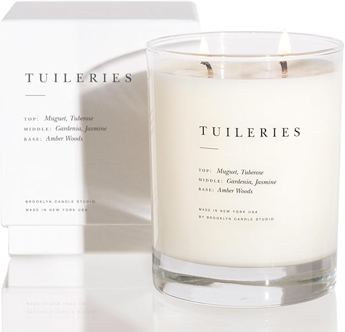 Brooklyn Candle Studio Tuileries Escapist Candle - Luxury Scented Candle, Vegan Soy Wax, Hand Poured in The USA, 70 Hour Slow Burn Time - 13oz