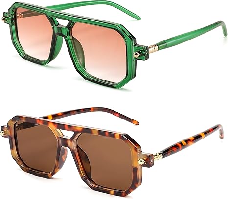 BUTABY Retro Square 70s Flat Aviator Sunglasses Women Men Vintage Trendy Plastic Frame Sun Glasses UV400 Protection
