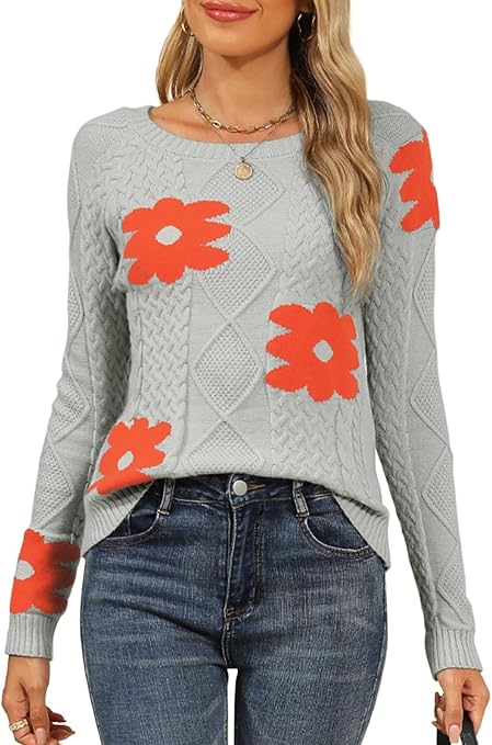 Cakulo Womens 2024 Fall Pullover Sweaters Cable Knit Vintage Chunky Sweater Trendy Long Sleeve Fitted Tops