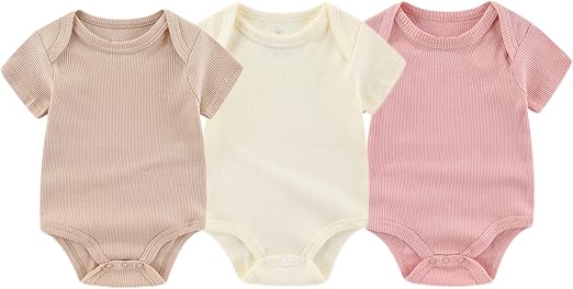 Chamie Newborn Boy Girl Bodysuit Infant Short Sleeve Jumpsuit Solid Ribbed Romper Outfits